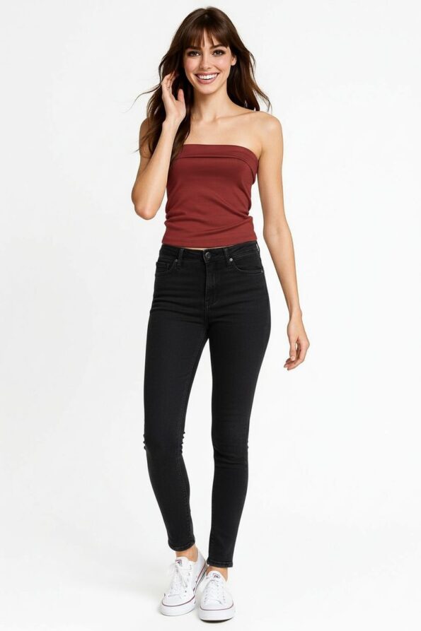 Top tipo banda con pretina doble en escote que ofrece mejor soporte y ajuste, diseño liso con confección en tejido elástico de tacto suave que se adapta al cuerpo, estructura ajustada que realza la figura, costuras discretas que mantienen un acabado limpio y moderno, ideal para crear looks casuales con estilo minimalista
