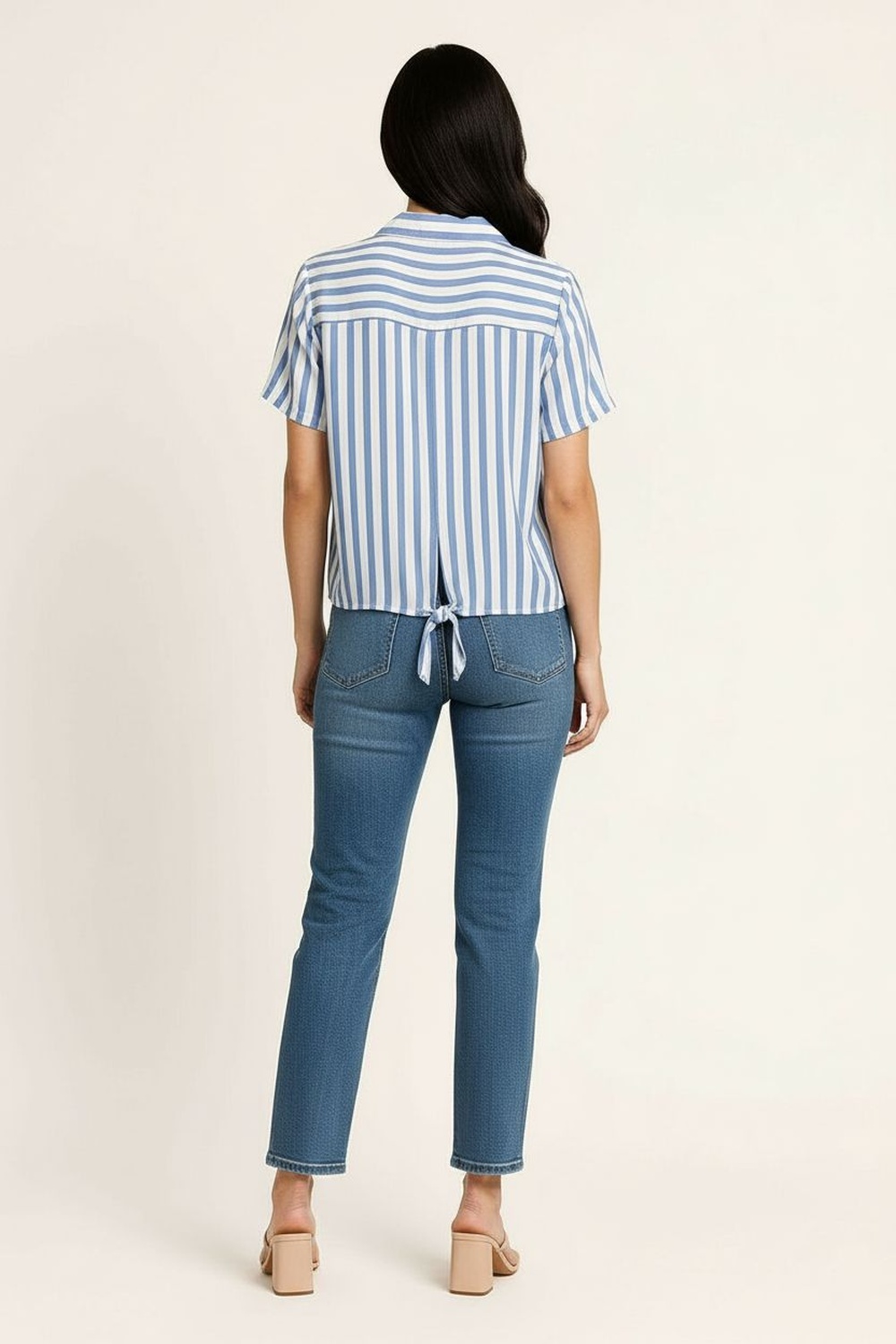 Blusa sin mangas de corte recto con cuello alto fruncido y abertura posterior con botón, diseño ligero con caída natural que estiliza la parte superior, confección en tela suave de textura ligera que brinda frescura y comodidad prolongada