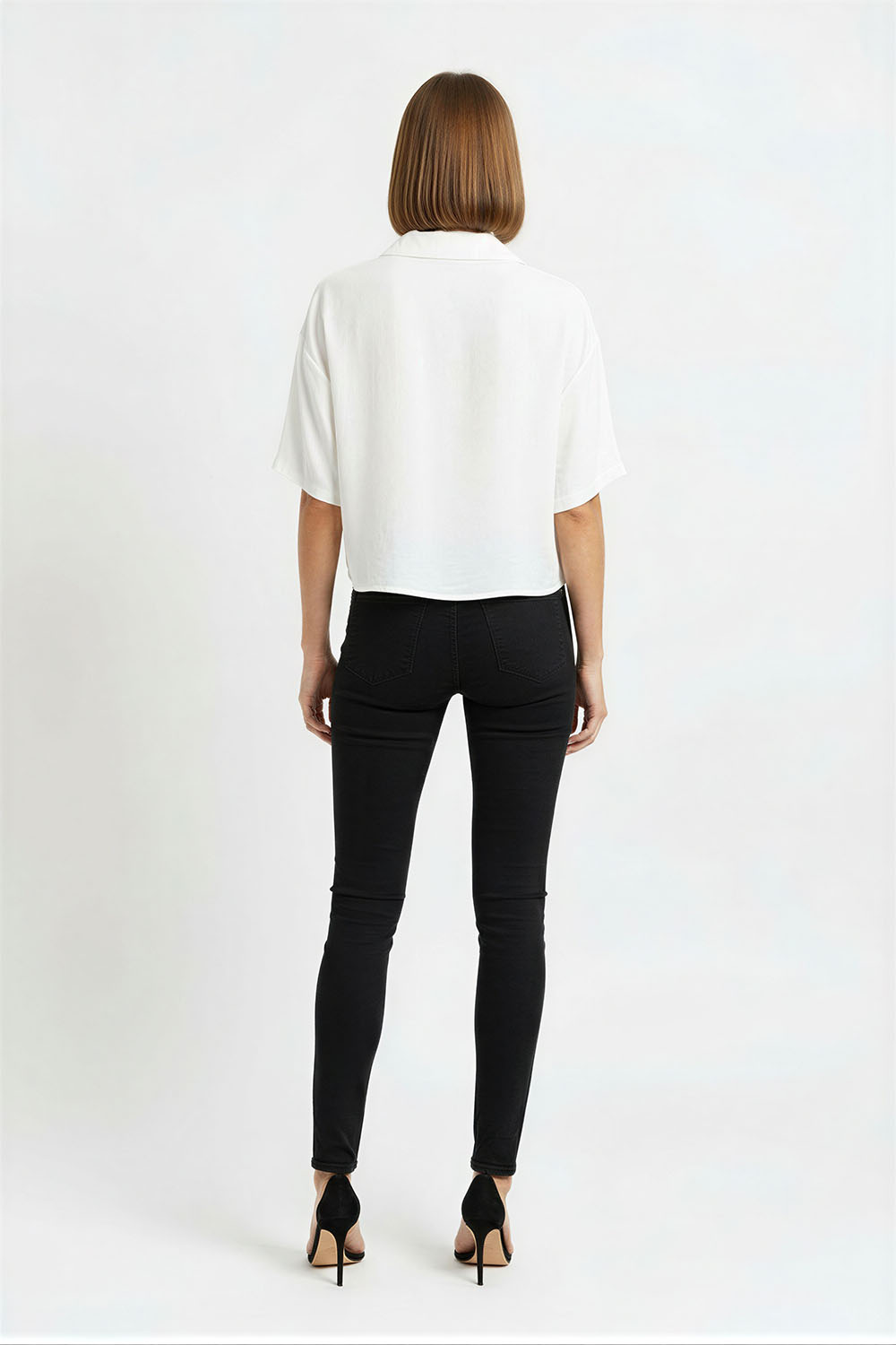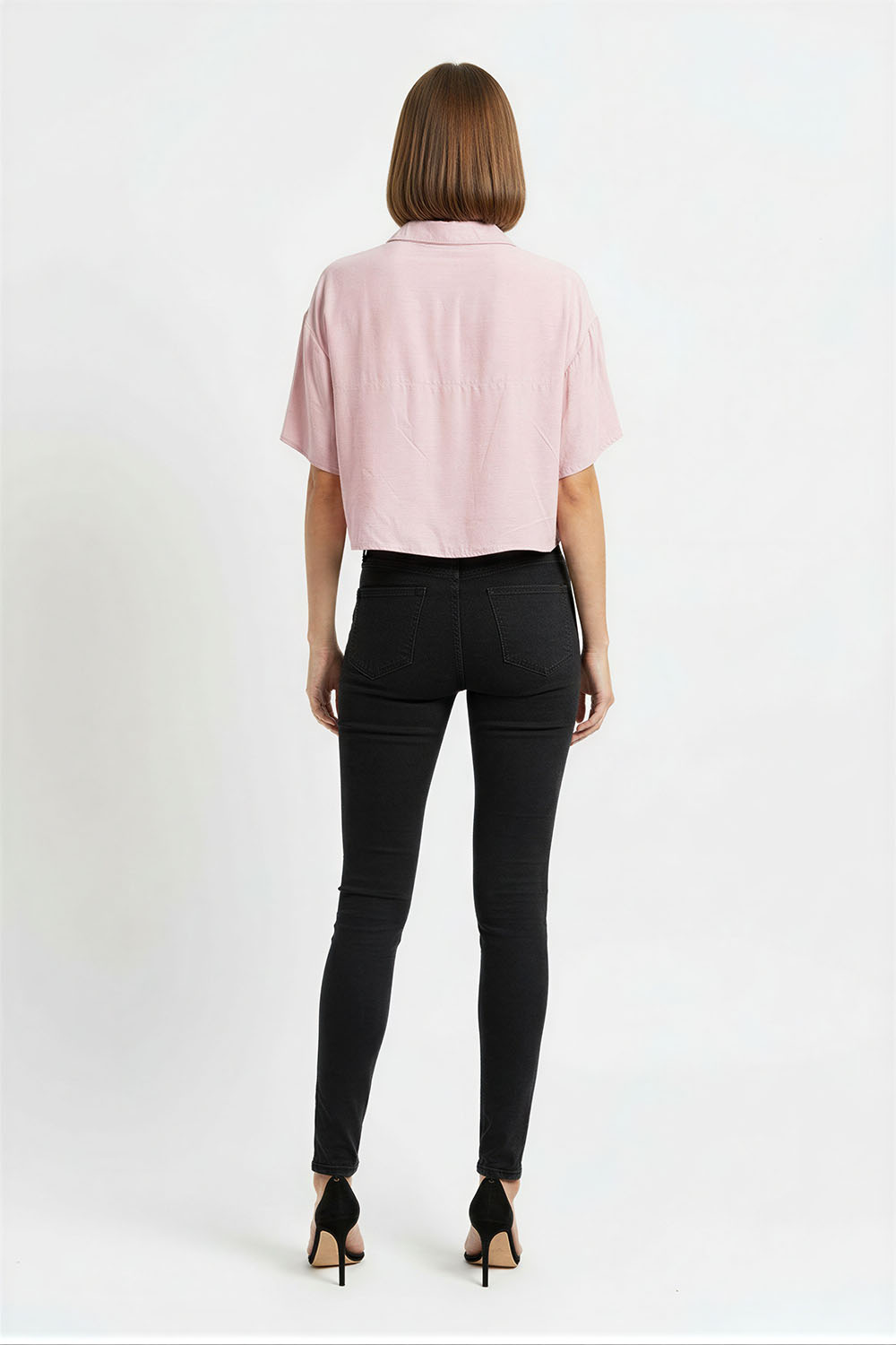 Pantalón de tiro medio con pretina delgada y cierre de botón metálico, bolsillos funcionales al frente y en la parte posterior que aportan practicidad, confección en mezclilla con elasticidad que brinda ajuste cómodo y libertad de movimiento, acabado limpio que resalta la figura