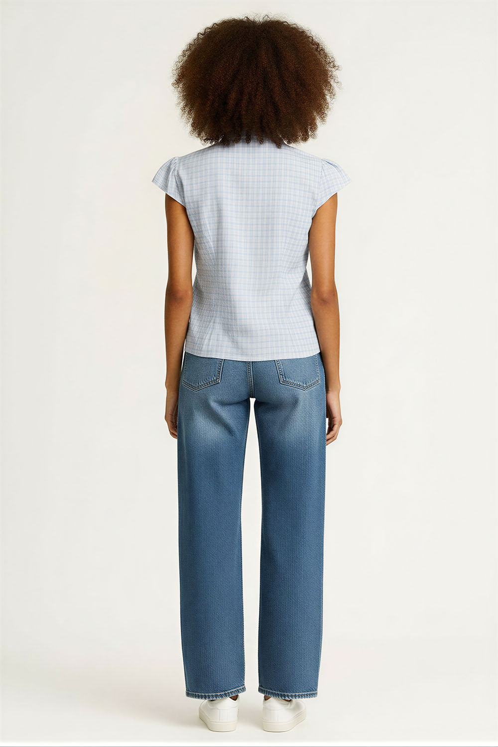 Blusa camisera con cuello clásico y botonadura frontal funcional que aporta estructura, manga corta con ligero volumen que da forma al brazo, jareta en cintura que permite ajustar el entalle, corte a la cintura que estiliza la figura, confección ligera que brinda comodidad para uso diario