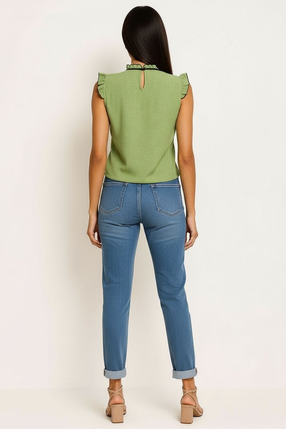 Top de tirantes delgados con escote drapeado que aporta un efecto elegante y moderno, confeccionado en tela ligera con caída natural que ofrece frescura y comodidad, diseño sin mangas que resalta los hombros y favorece un estilo sofisticado, ideal para combinar en outfits de temporada