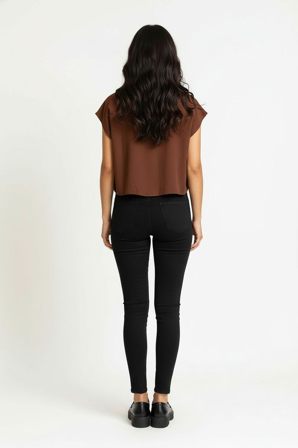 Blusa corta con escote cuadrado y ajuste fruncido al frente que realza la figura, cintilla decorativa al centro que aporta un toque delicado, mangas largas con caída ligera que equilibran el diseño, confección en tela suave con textura ligera que ofrece comodidad y un estilo moderno y femenino