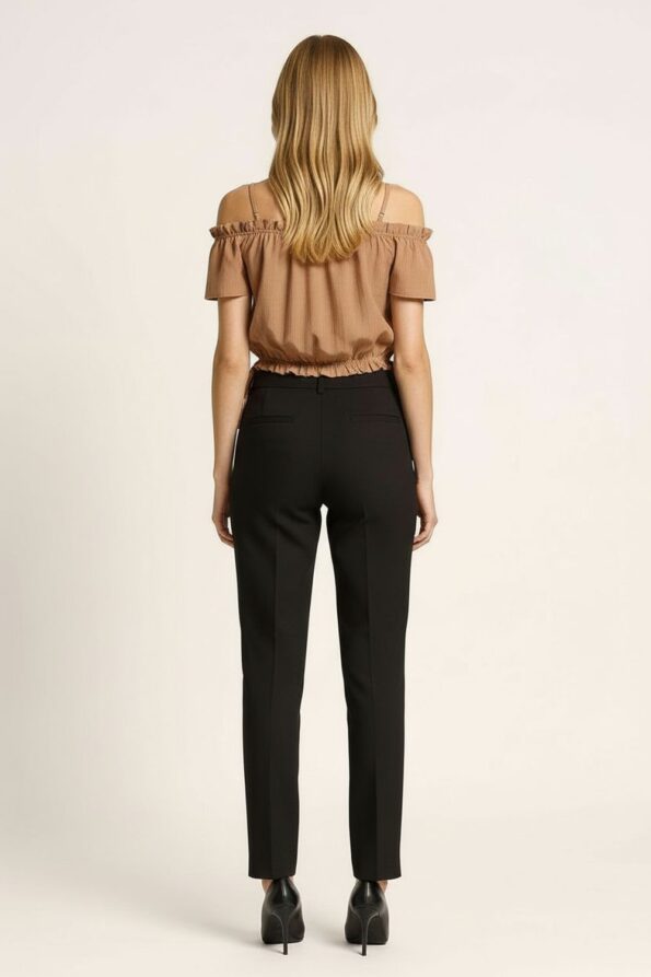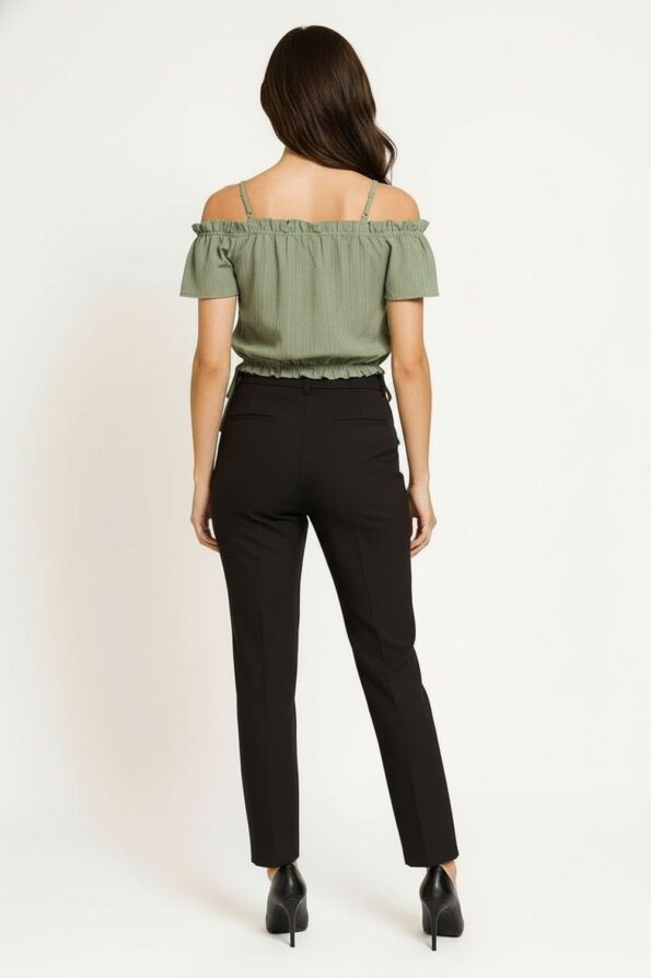 Pantalón de tiro alto con pinzas frontales que aportan estructura, pretina con trabillas y cinturón incluido que define la cintura, corte amplio de pierna recta que brinda comodidad, confección en tejido firme con caída fluida que conserva la forma, ideal para un look moderno y versátil