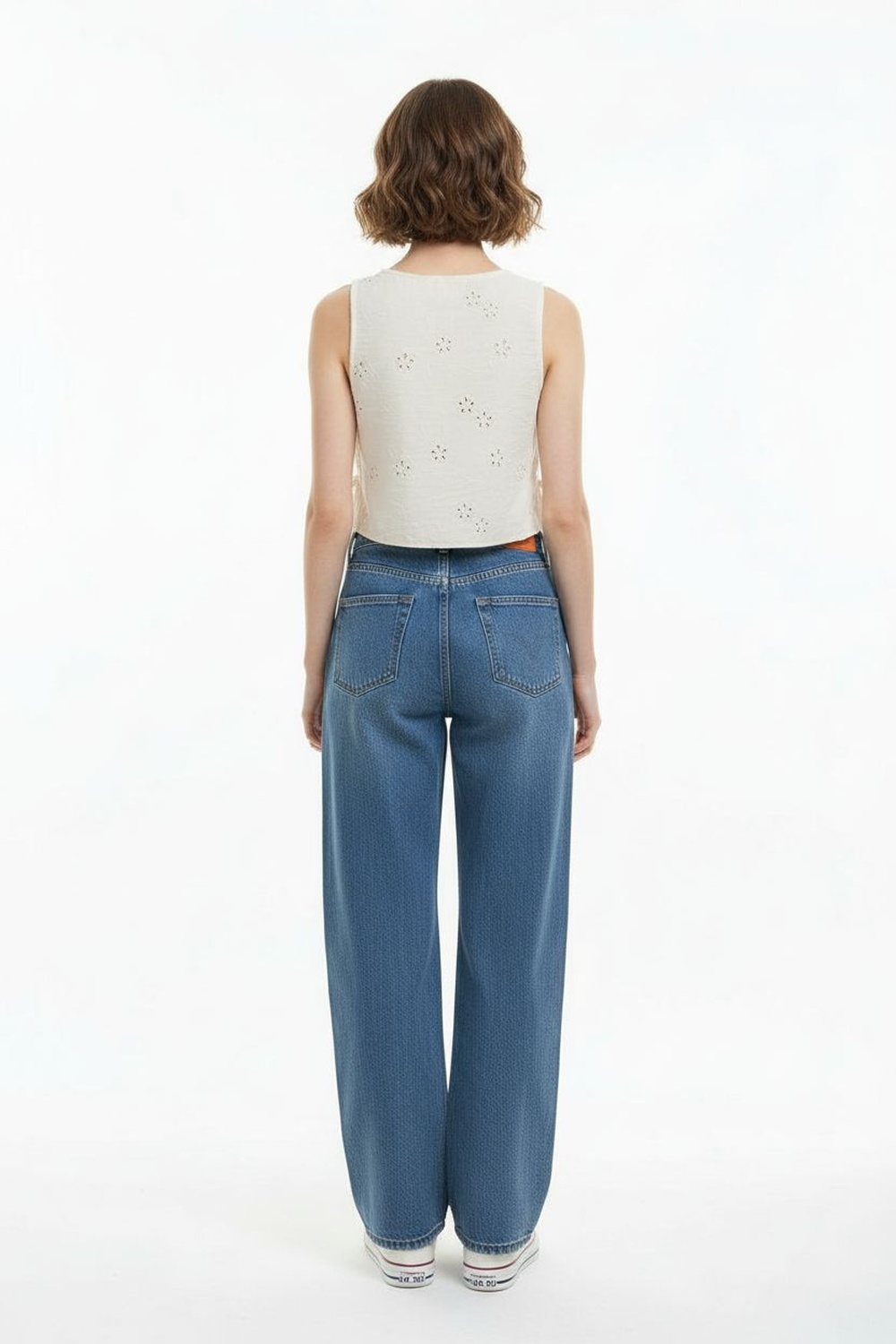 Blusa crop sin mangas con estructura ligera, diseño con amarres laterales ajustables, silueta recta, terminado delicado