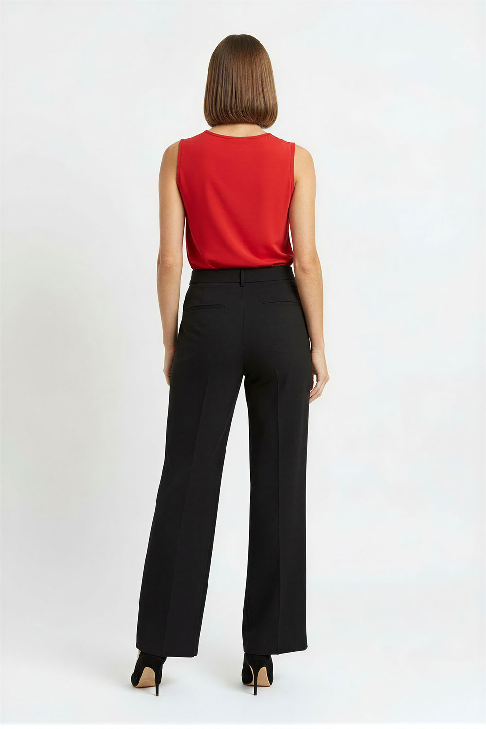 Blusa sin mangas con cuello redondo, diseño con abertura frontal y detalle decorativo, estructura ligera, caída fluida, ajuste cómodo