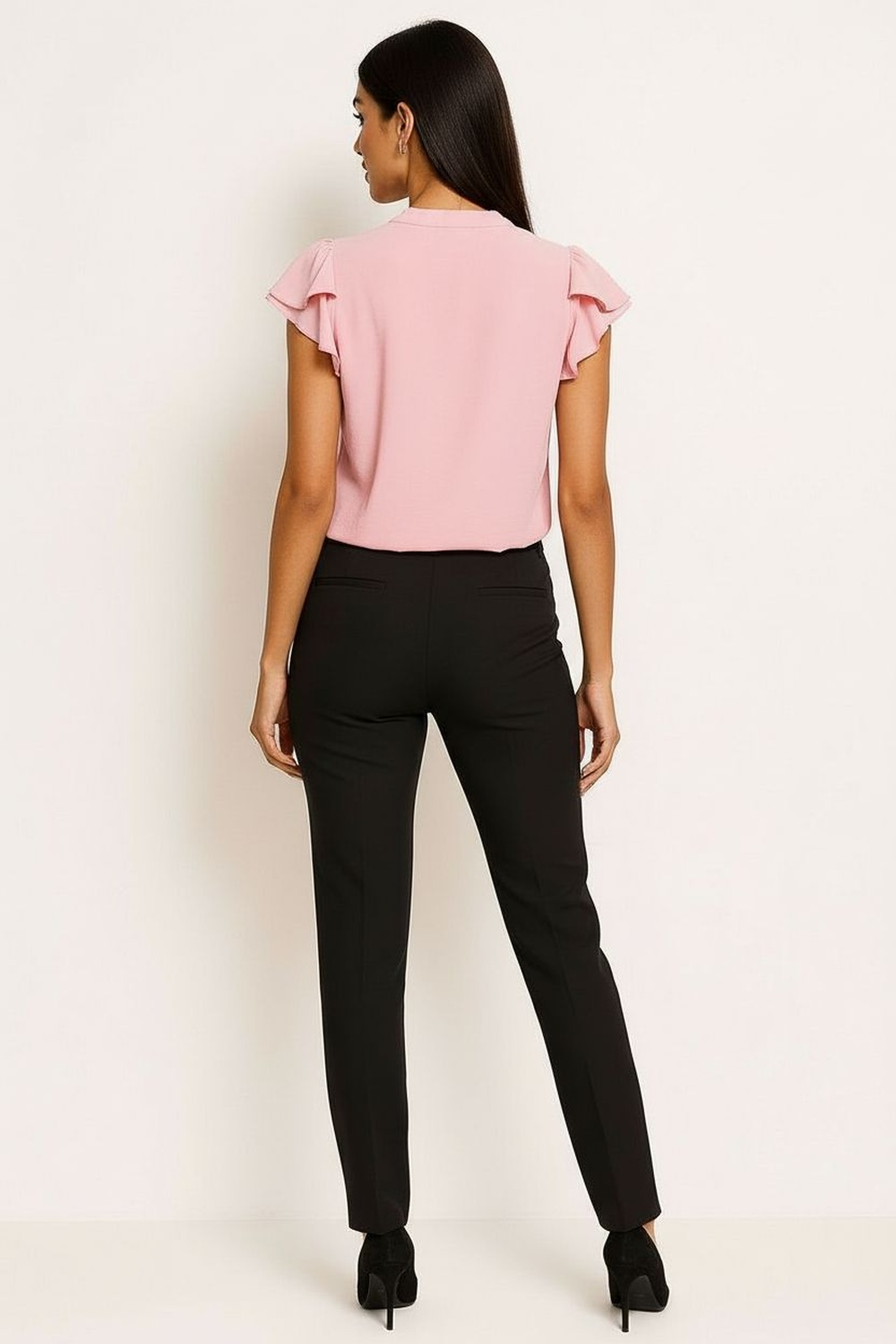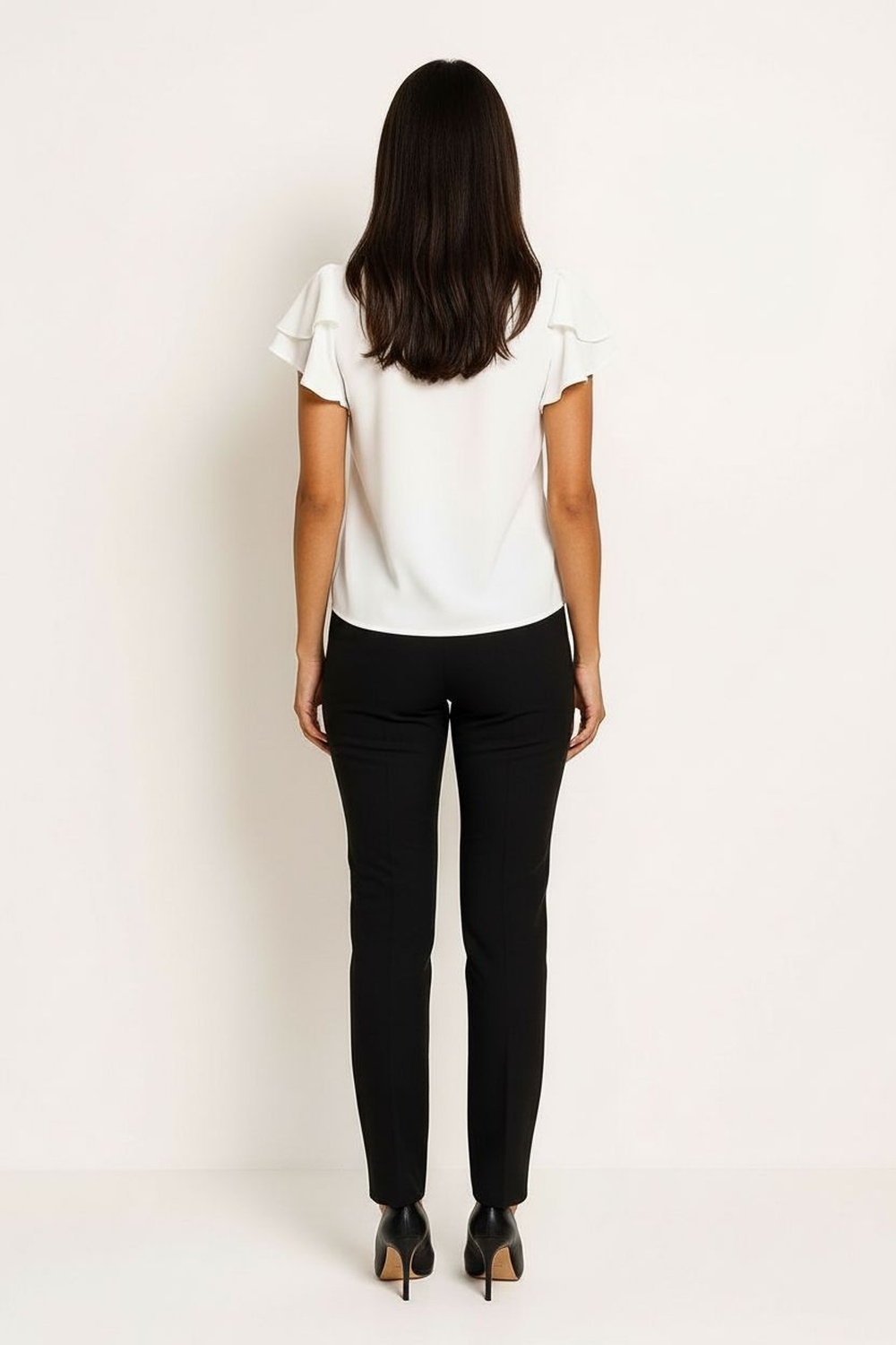 Blusa con cuello mao, botonadura frontal, manga corta con volumen, estructura ligera, caída recta, terminados limpios y cómodos