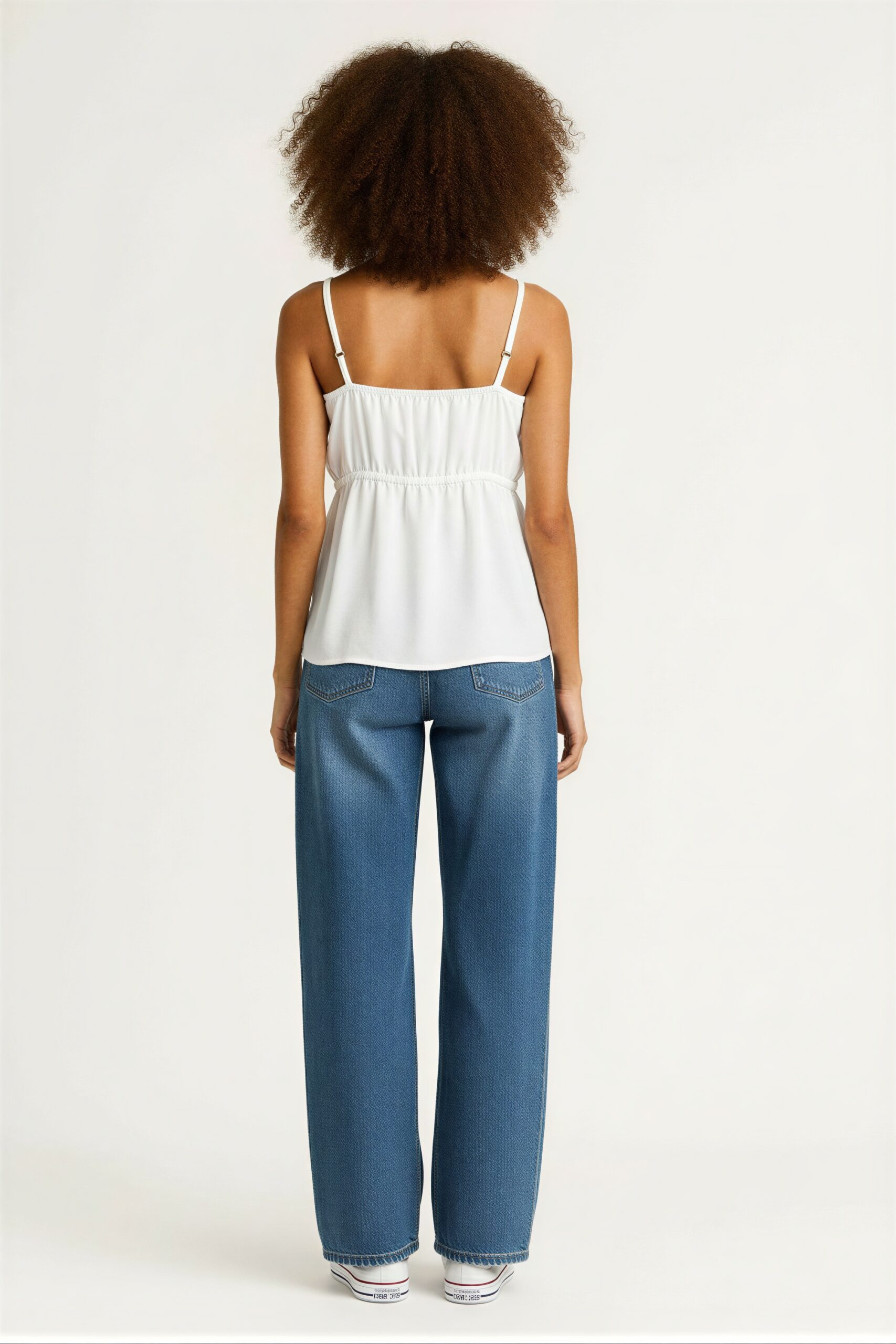 Top con tirantes anchos y escote recto, cuerpo confeccionado con técnica smock que brinda ajuste flexible y cómodo, largo a la cadera, terminación inferior con ligero vuelo que aporta dinamismo, espalda con amarre funcional para mejor ajuste