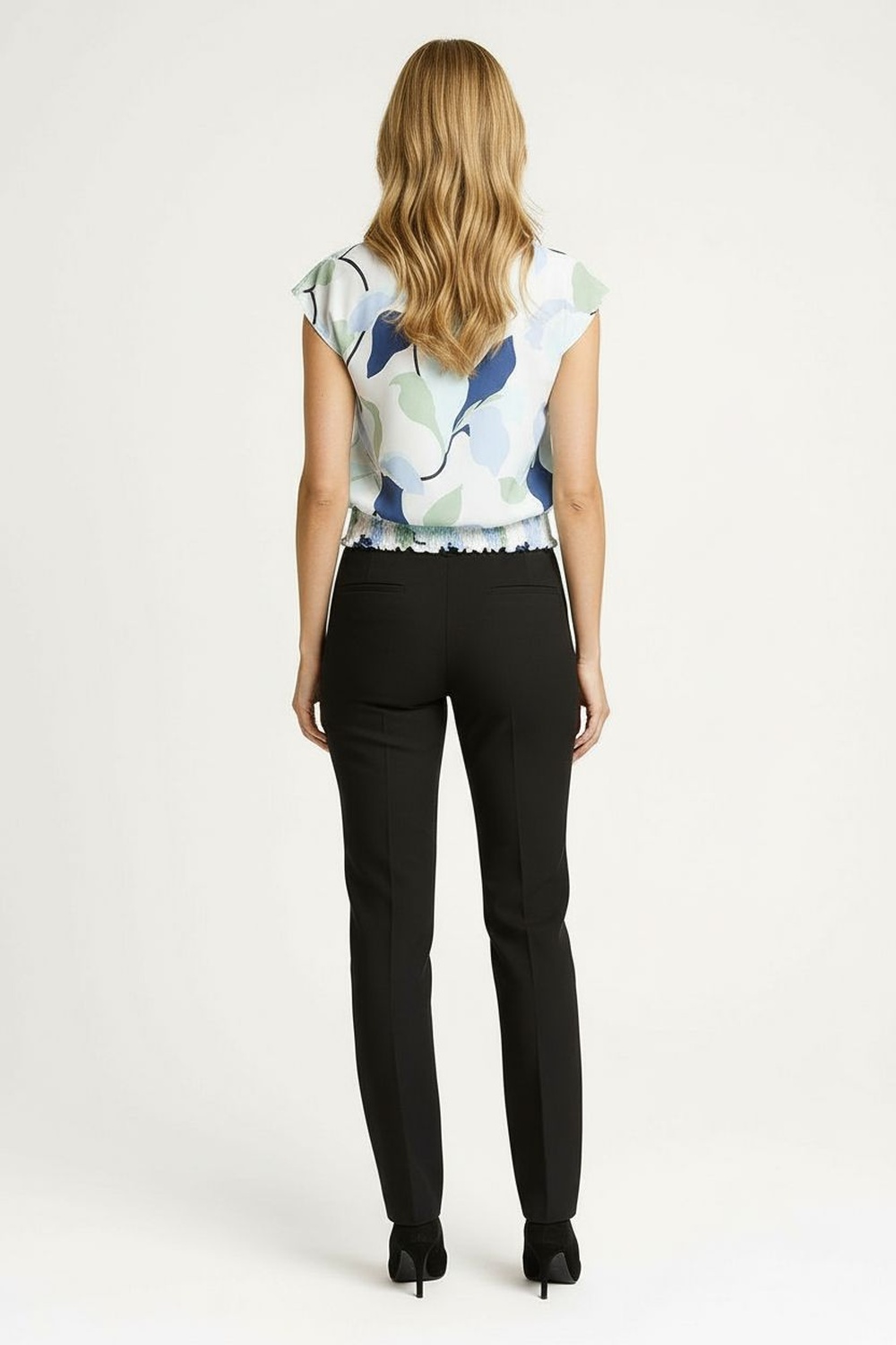 Blusa cuello redondo manga corta corte recto con ajuste inferior mediante elástico que define la silueta ligera y cómoda