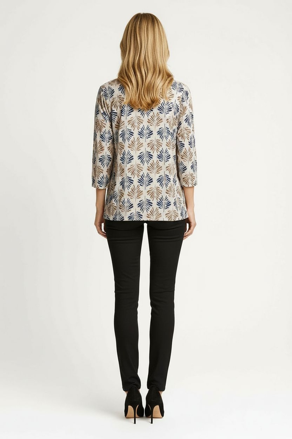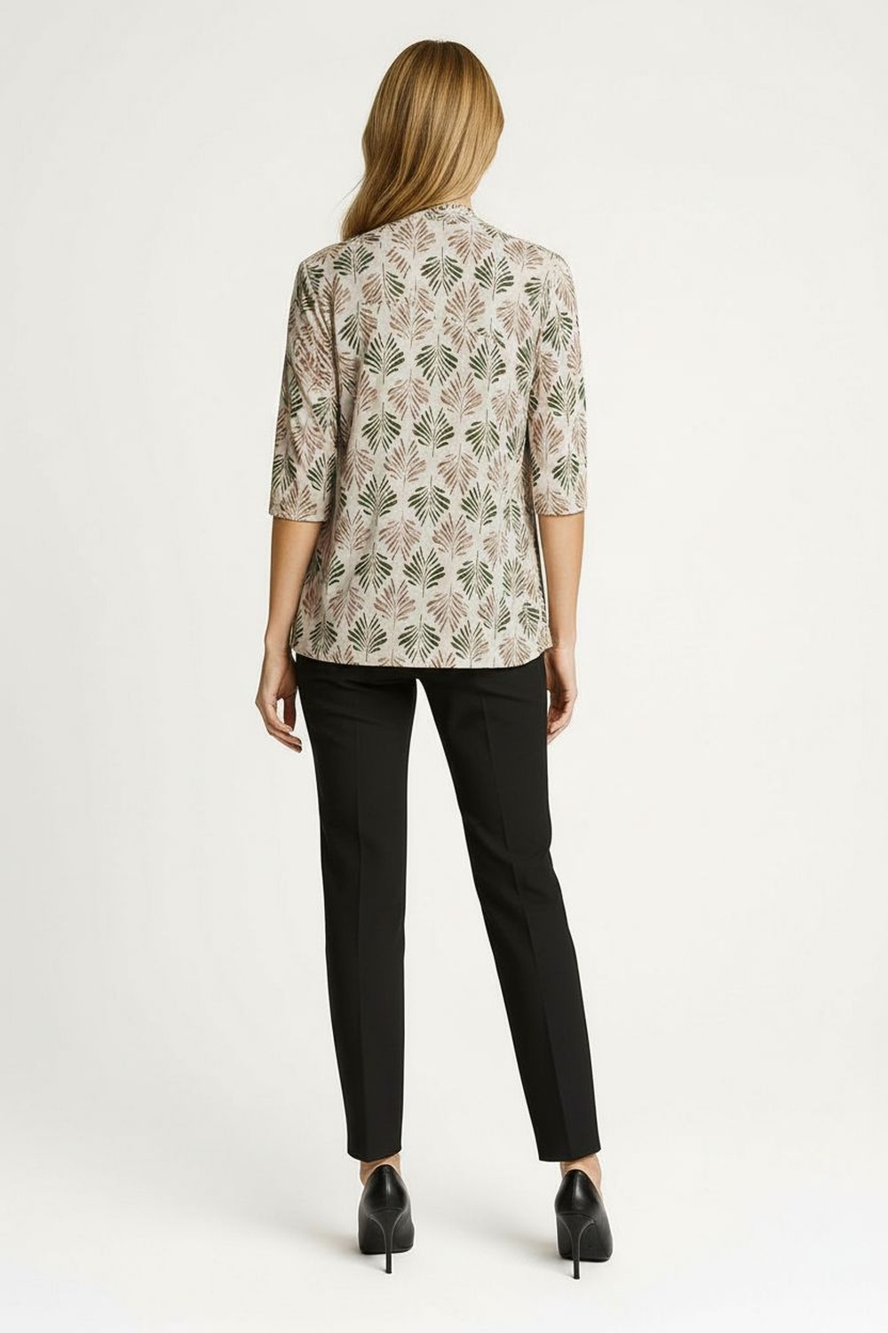 Blusa tipo conjunto con pieza interior y capa exterior abierta, manga tres cuartos y caída ligera