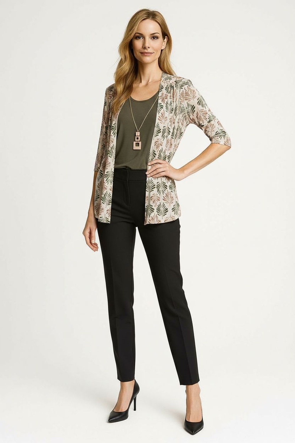 Blusa tipo conjunto con interior liso y capa exterior abierta, manga larga y ajuste fluido