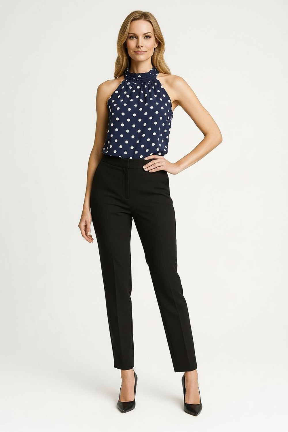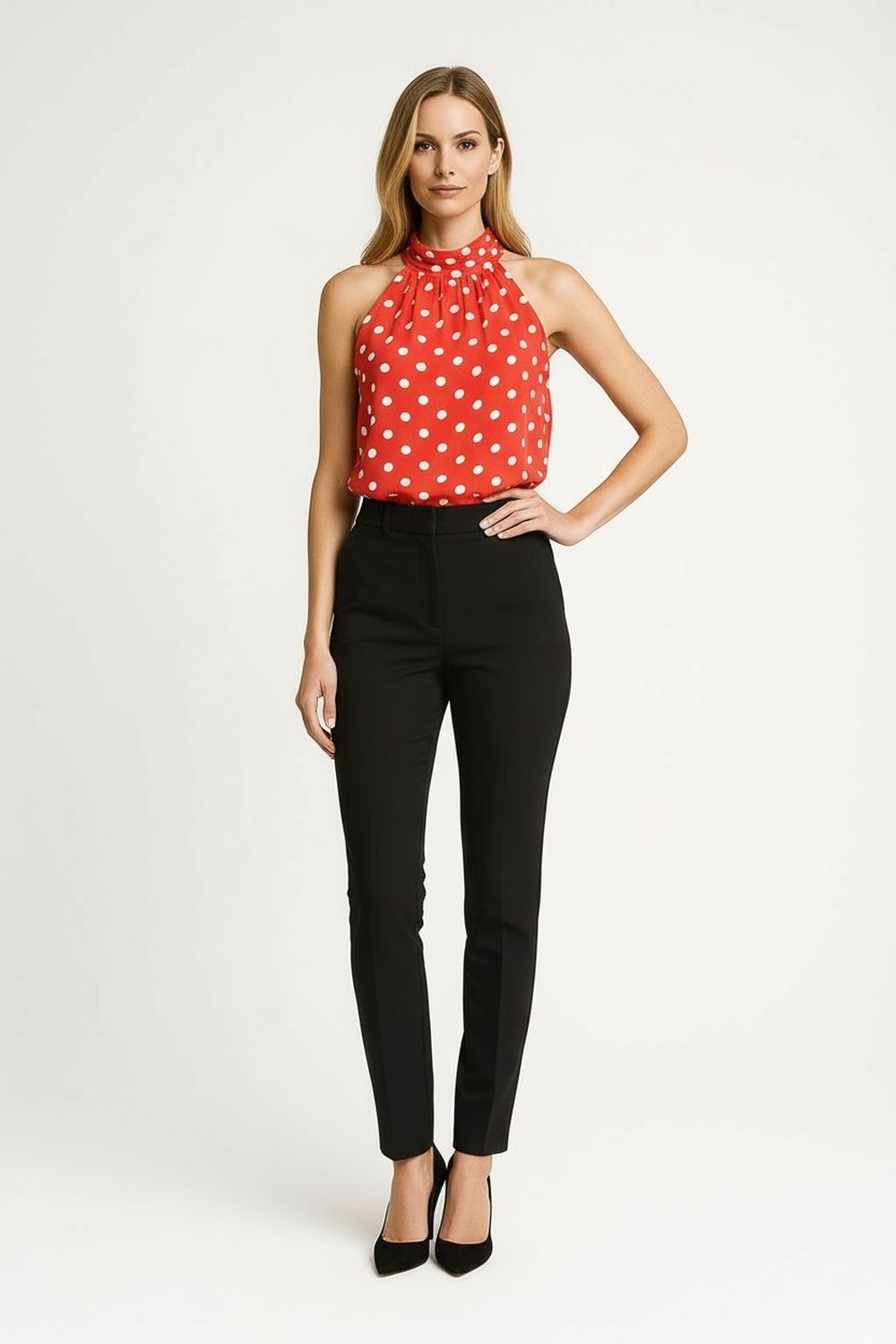Blusa halter cuello alto con ajuste en cuello caída suelta y silueta ligera FIT REGULAR
