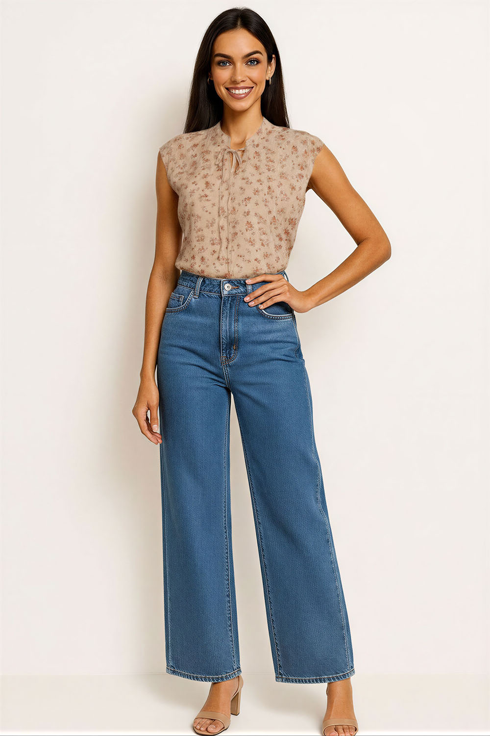 Blusa con escote cerrado y lazo ajustable al frente, diseño sin mangas con terminación limpia en hombros que aporta comodidad, confección en tejido ligero con caída fluida que permite libertad de movimiento, corte recto con ligero ajuste en la parte inferior que favorece el calce, largo ideal para uso diario