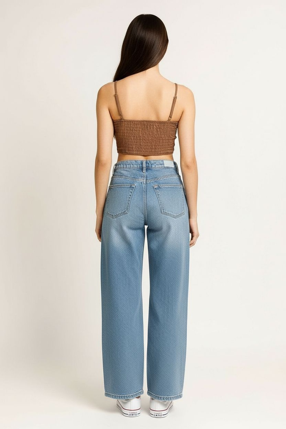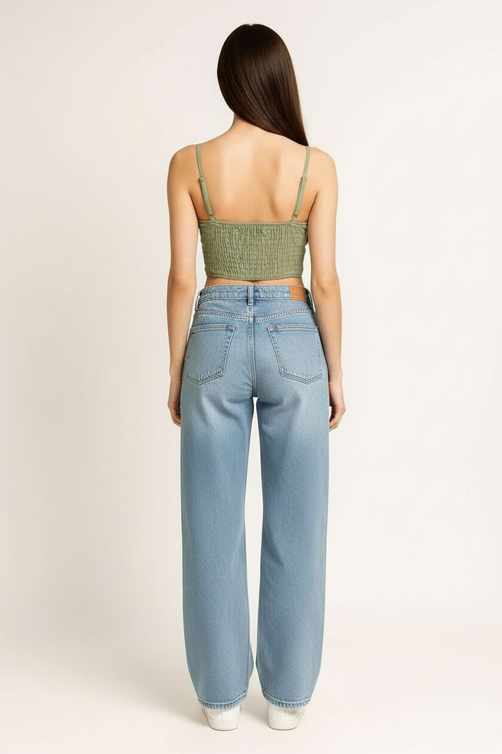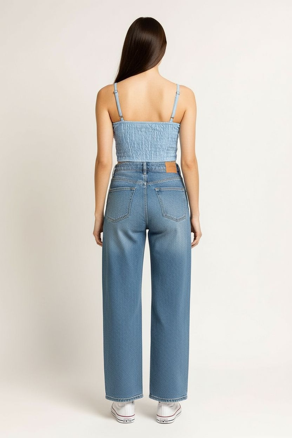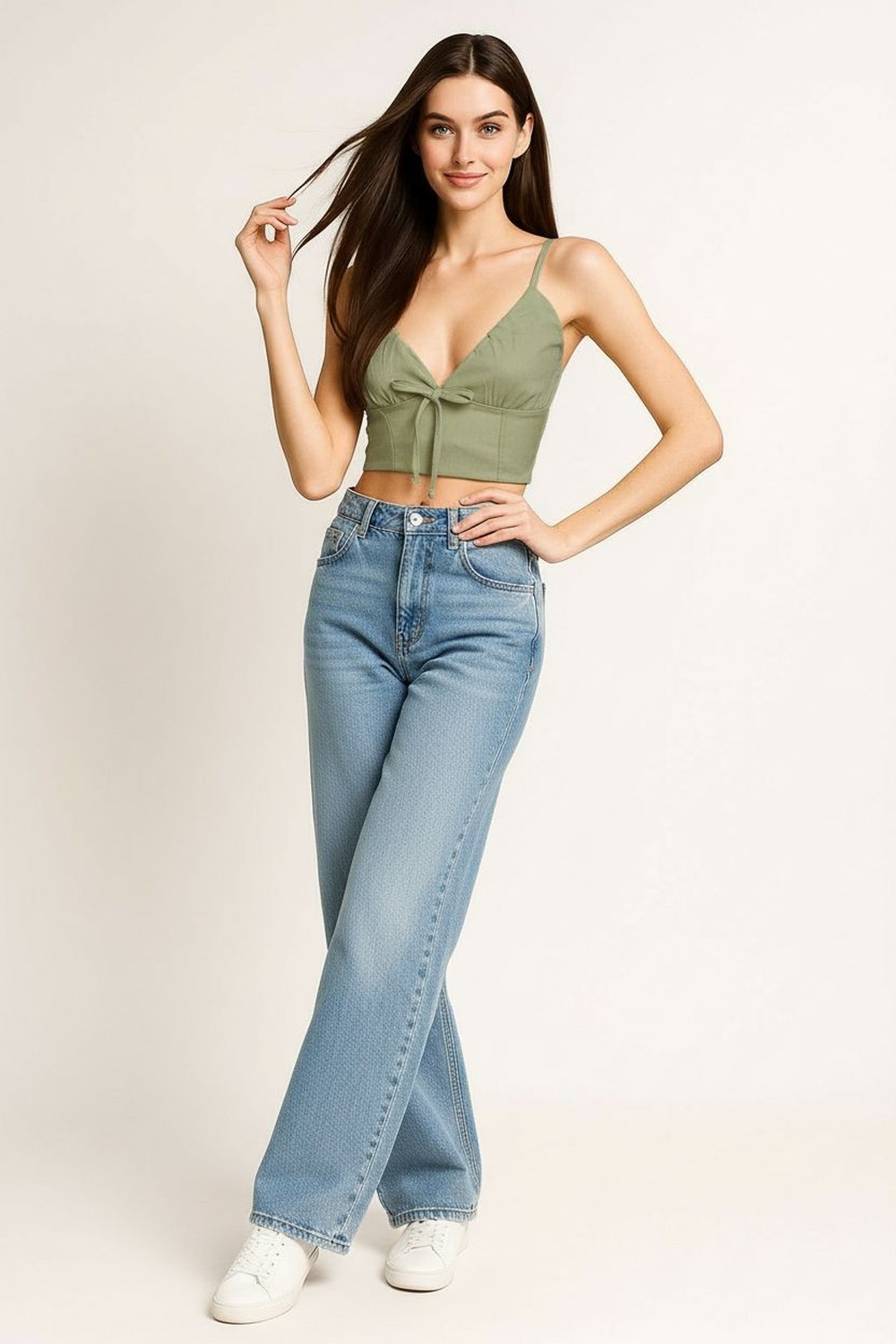 Blusa de tirantes delgados ajustables con escote recto y detalle de amarre frontal regulable, corte a la cintura con ligero vuelo inferior que aporta movimiento, confección ligera de textura suave que permite frescura, estructura cómoda que se adapta al contorno sin perder forma