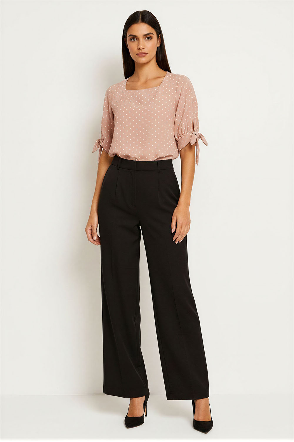 Blusa manga larga cuello con solapa corbata frontal botonadura al frente estructura recta terminación redondeada confección ligera para uso diario