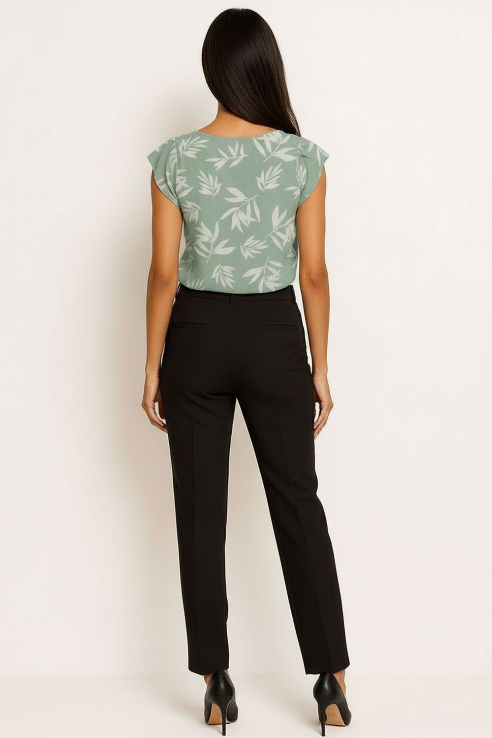 Conjunto integrado por top de tirantes con estructura definida en busto que ofrece soporte cómodo, costuras marcadas que acentúan la forma, cierre posterior discreto que mejora el ajuste, acompañado de pantalón de tiro alto con pinzas frontales que aportan caída limpia, pretina ancha que brinda seguridad al portar, pernera recta que aporta movimiento natural, tela con ligera elasticidad que mejora la libertad al caminar