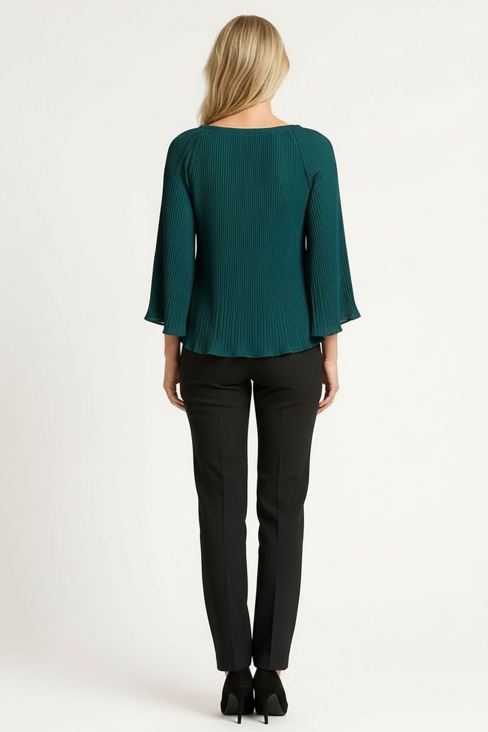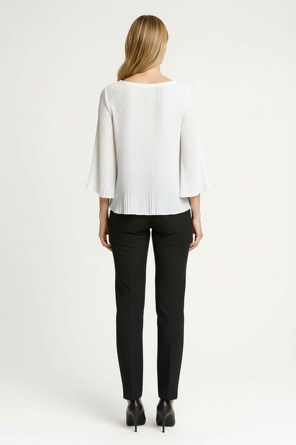 Blusa plisada con cuello redondo, manga amplia, caída ligera, textura plisada, ajuste cómodo, FIT REGULAR
