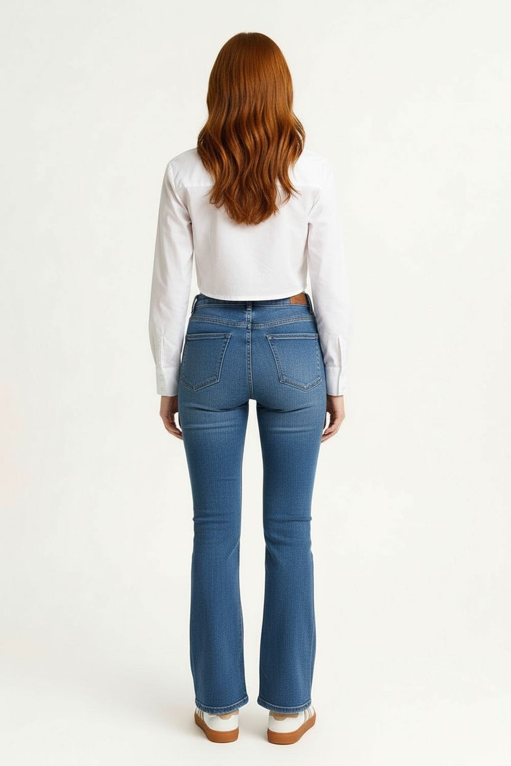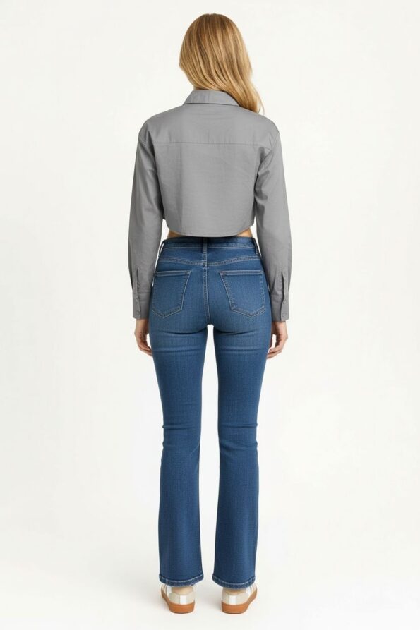 Blusa camisera de manga larga confeccionada en manta ligera con cuello clásico y botonadura oculta al frente, diseño crop con dobladillo posterior enresortado que aporta ajuste cómodo y moderno, puños con botón que brindan acabado pulido y costuras finas que aseguran durabilidad