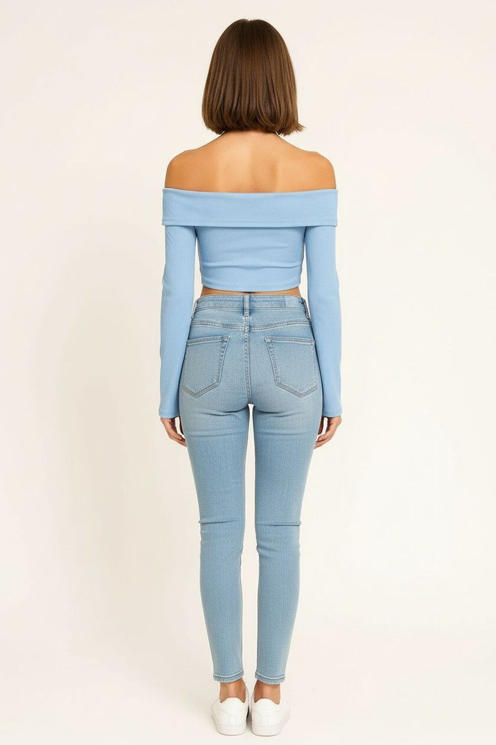 Blusa en tejido rib con escote amplio tipo bardot y detalle de ojal decorativo en el frente que aporta diseño distintivo, manga larga ajustada que estiliza brazos, corte corto con ajuste al cuerpo que define la silueta, confección elástica y suave que brinda comodidad durante todo el día