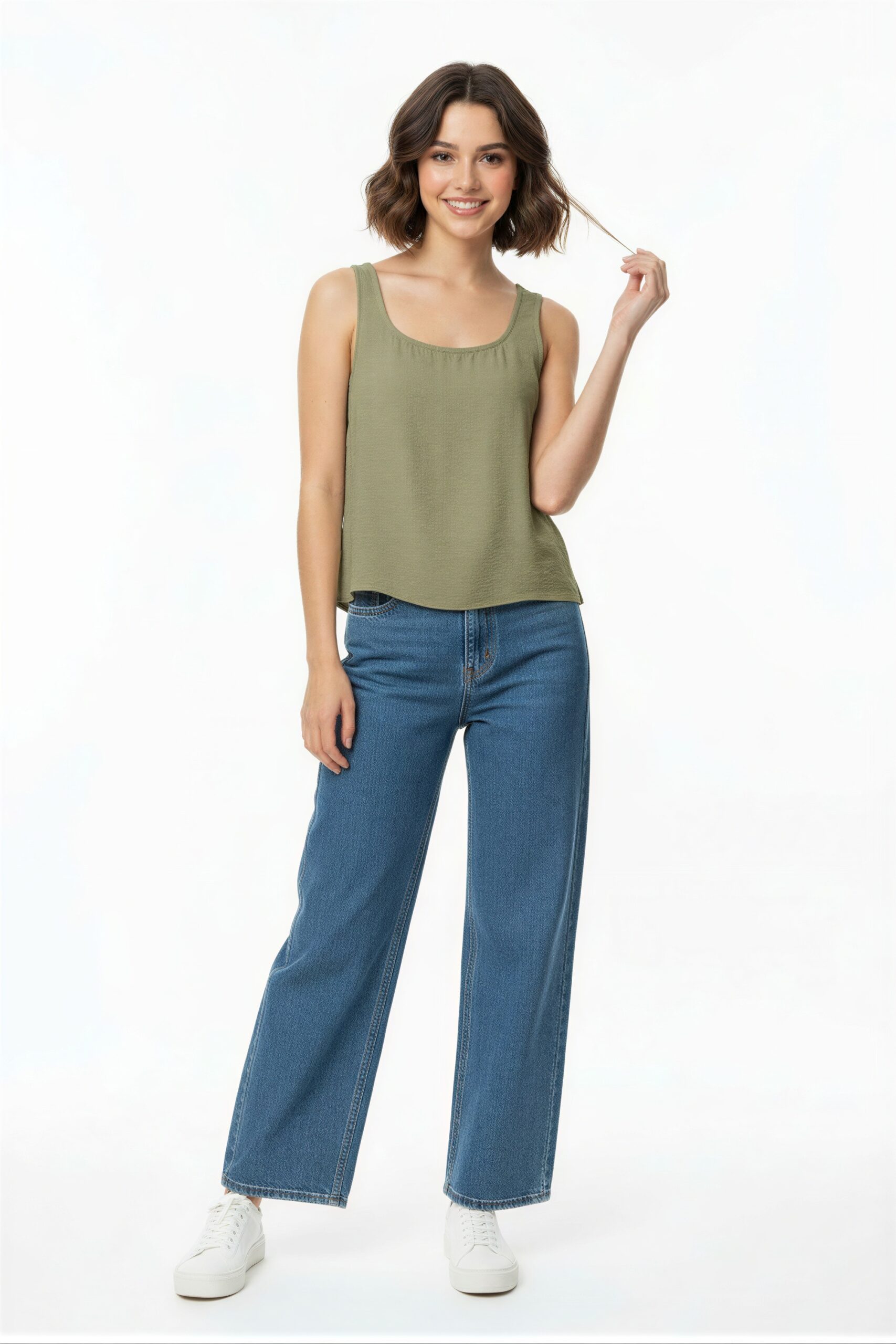 Blusa sin manga con cuello redondo, ajuste suelto, caída ligera, tela suave y fresca, confección cómoda para uso continuo