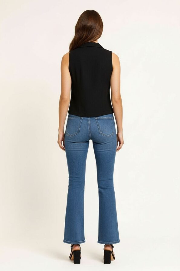 Blusa sin mangas con cuello de solapa que aporta un estilo elegante y moderno, botonadura frontal cubierta que realza el diseño con un acabado limpio, silueta recta que favorece la versatilidad en combinaciones, confección en tela ligera que brinda frescura y comodidad en cada uso