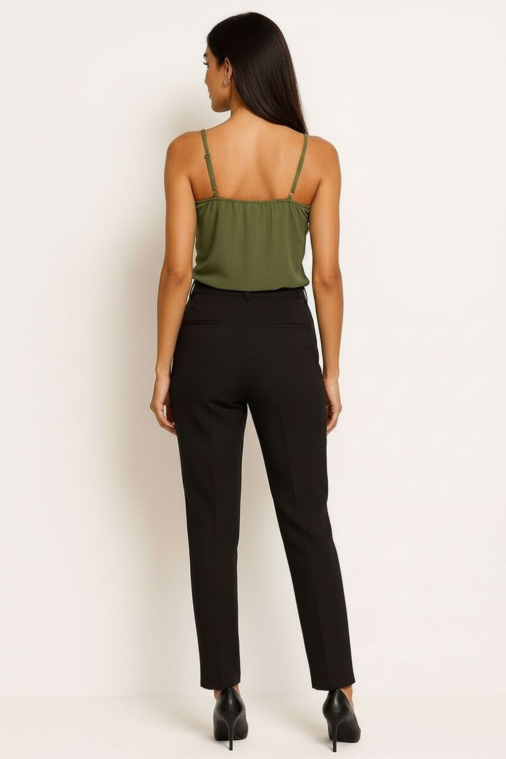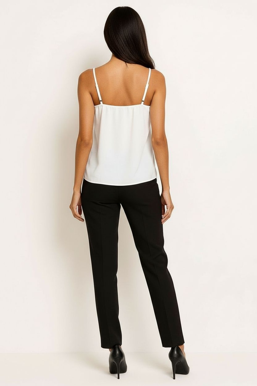 Blusa con tirantes delgados, detalle de olan en escote, caída suelta, estructura ligera, ajuste cómodo, confección fluida