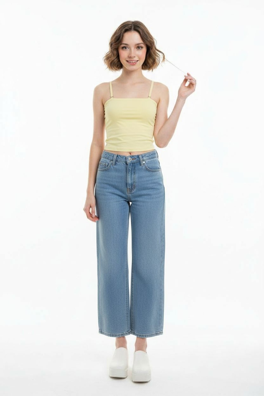 Top de tirantes delgados con escote recto confección ligera ajuste cómodo con tirantes ajustables acabado suave al tacto