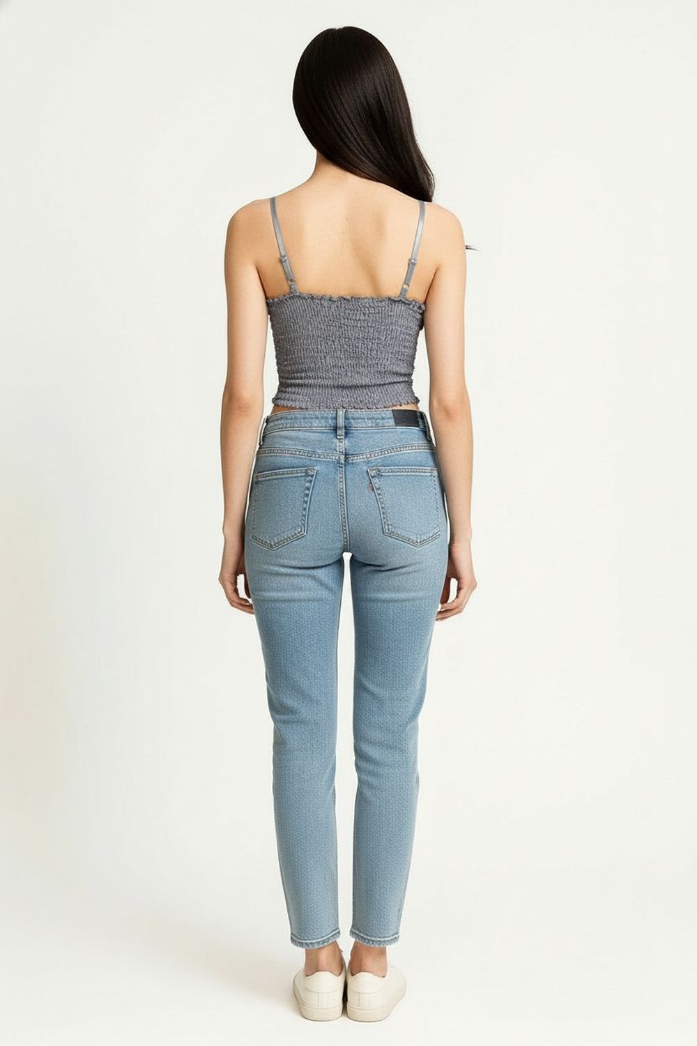 Blusa corta con diseño fruncido en el pecho que se ajusta al cuerpo, tirantes anchos con detalle de vuelo que añaden un toque femenino, escote cuadrado que realza la silueta, confección en tejido suave y elástico que garantiza confort y libertad de movimiento, ideal para un look fresco y moderno