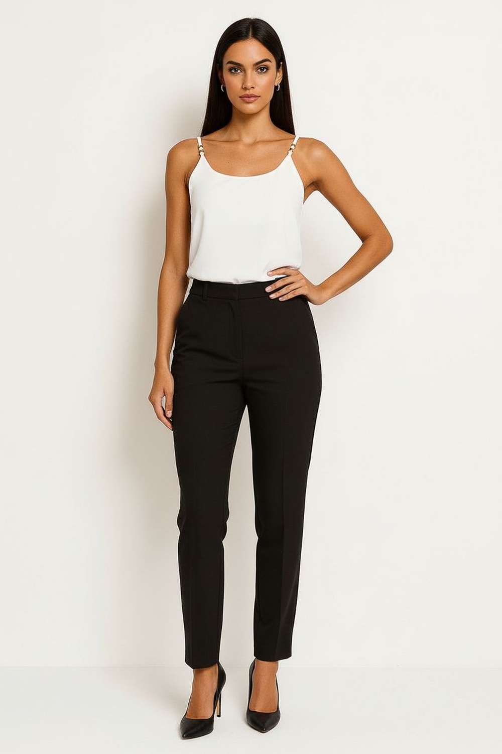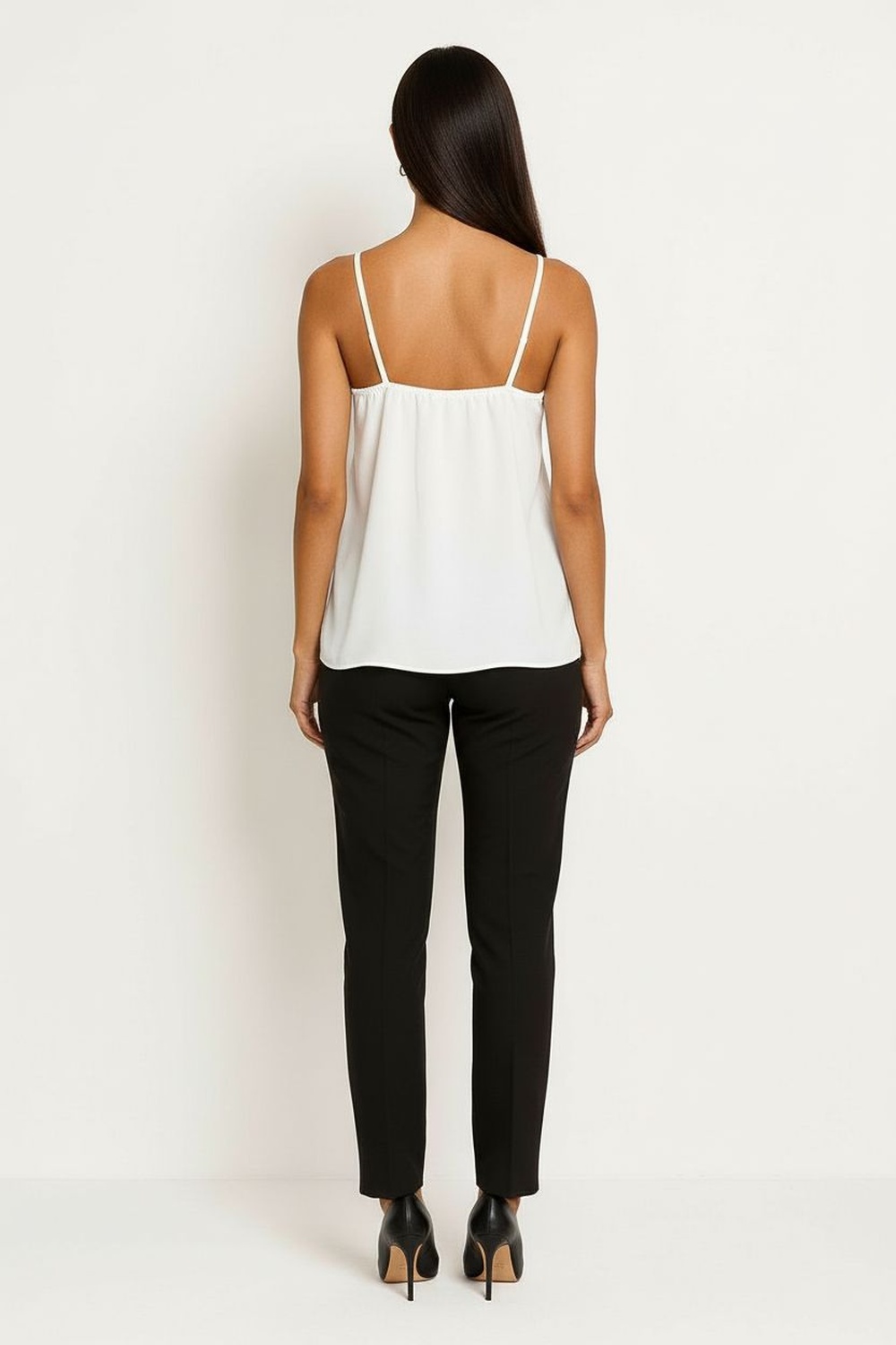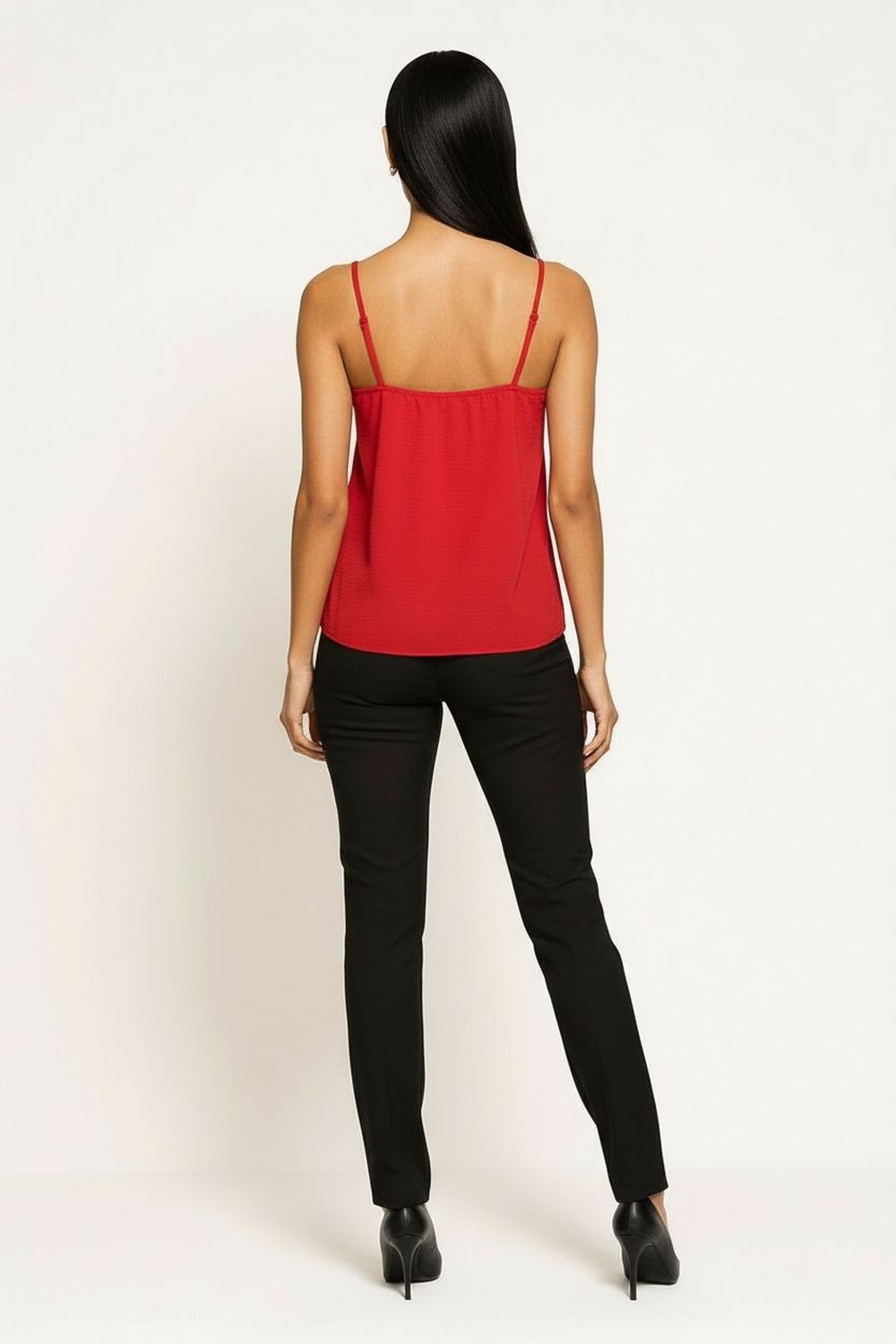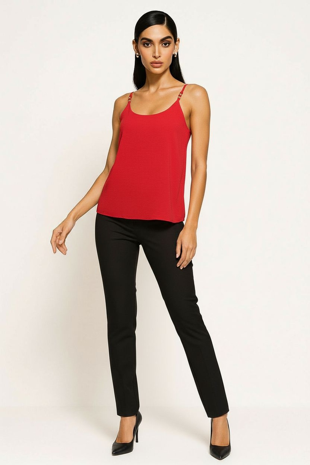 Top de tirantes delgados con escote redondeado que ofrece ajuste cómodo, corte recto con caída ligera que se adapta al cuerpo, largo a la cadera que permite uso versátil, confección en tejido suave con buena elasticidad