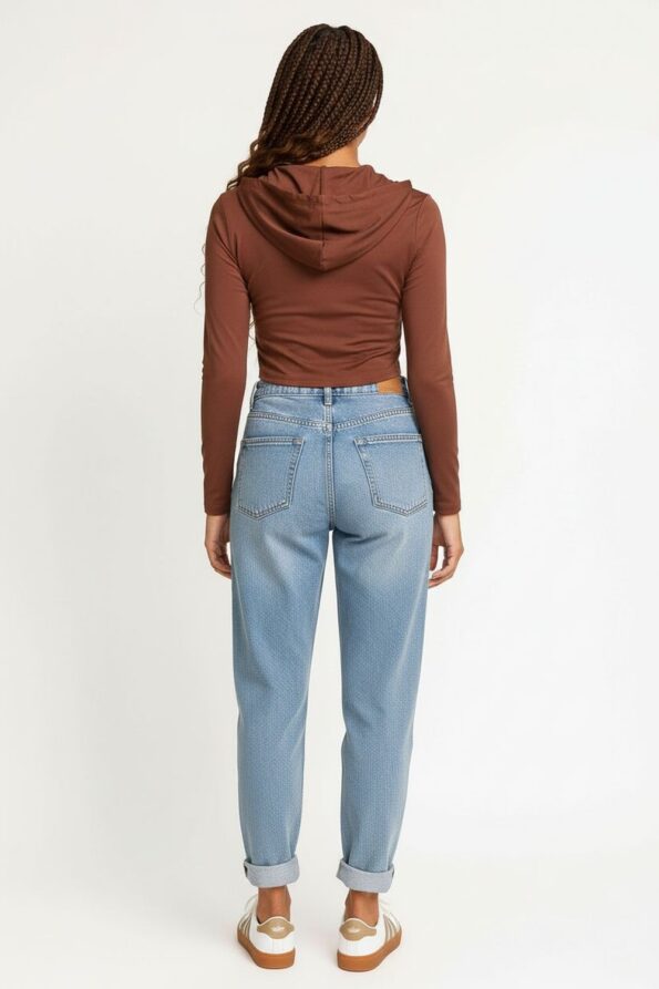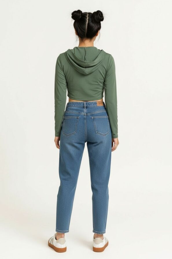 Chamarra corta de estilo vaquero confeccionada en mezclilla ligera que aporta resistencia y comodidad, cuenta con cuello camisero clásico que brinda un aire moderno y versátil, incorpora bolsillos frontales de solapa con botones metálicos que destacan su diseño utilitario y actual, su corte recto con fit relajado favorece la silueta mientras el largo crop estiliza la cintura aportando un aire juvenil y en tendencia