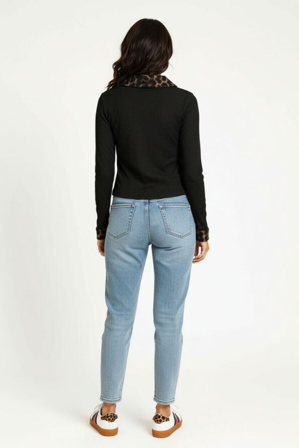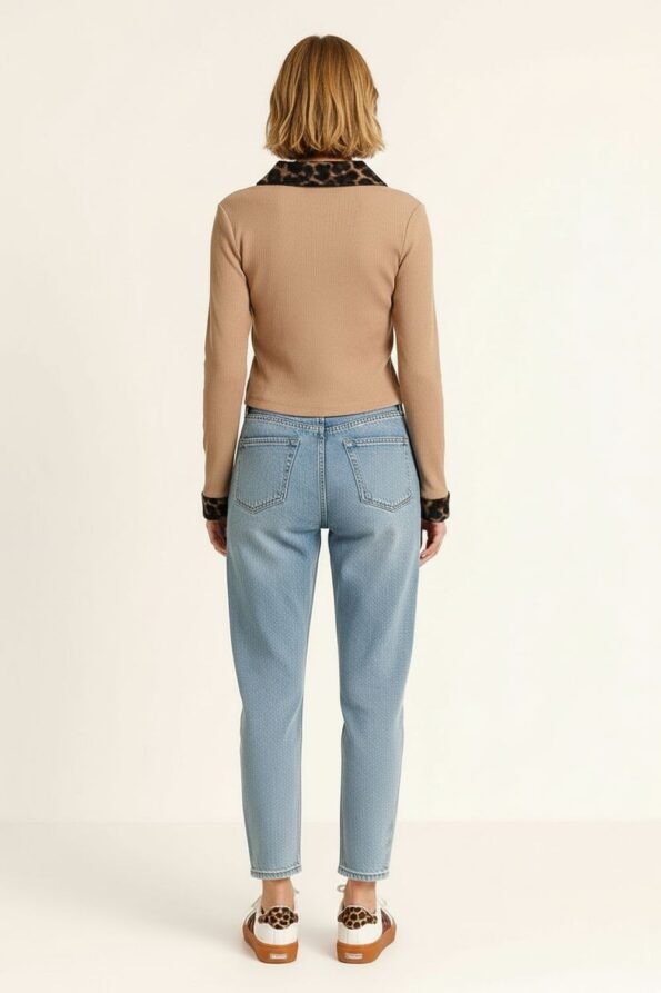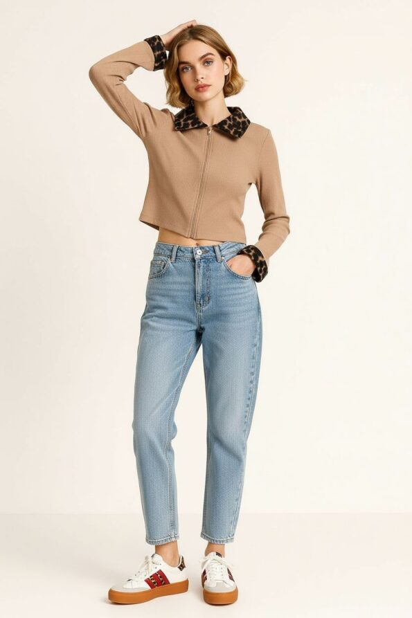 Chamarra de tejido rib con cierre al frente que brinda practicidad y ajuste seguro, cuello y puños en material suave que añaden contraste y textura elegante, corte corto que define la cintura y favorece la figura, confección ligera y elástica que ofrece confort y movilidad durante el día