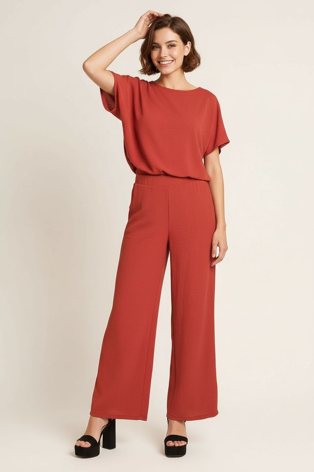 Conjunto de dos piezas blusa de manga corta corte amplio pantalón de tiro medio con pretina elástica ajuste cómodo