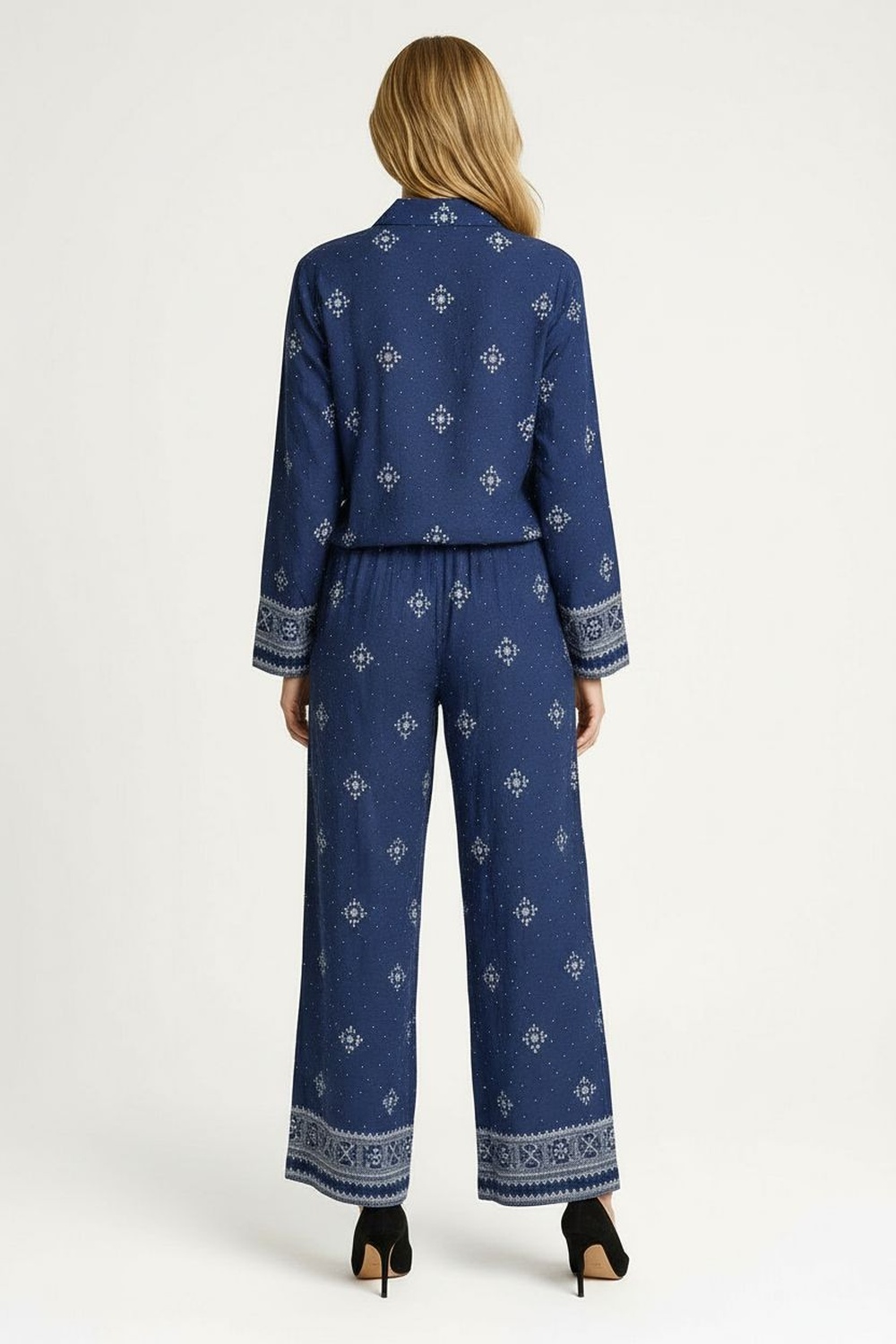 Conjunto de camisa con botones al frente manga larga pantalón de corte recto pretina cómoda caída ligera terminación uniforme