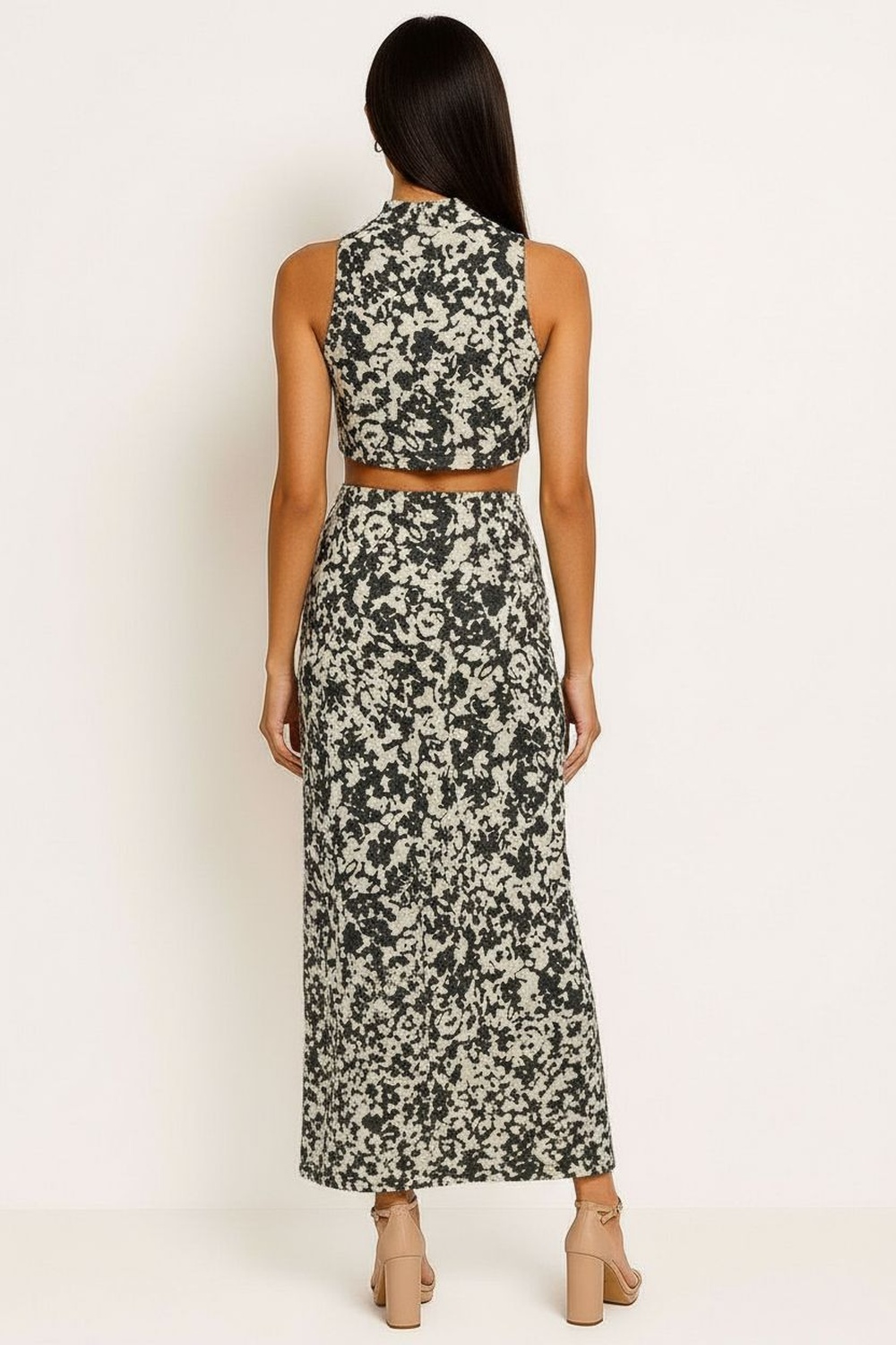 Conjunto de blusa sin mangas con cuello alto y pantalón de tiro medio con pierna recta que estiliza la silueta, pretina cómoda que brinda ajuste seguro, corte amplio en pierna que facilita movilidad, confección en tela tipo crepe con textura ligera y caída fluida que aporta elegancia y confort