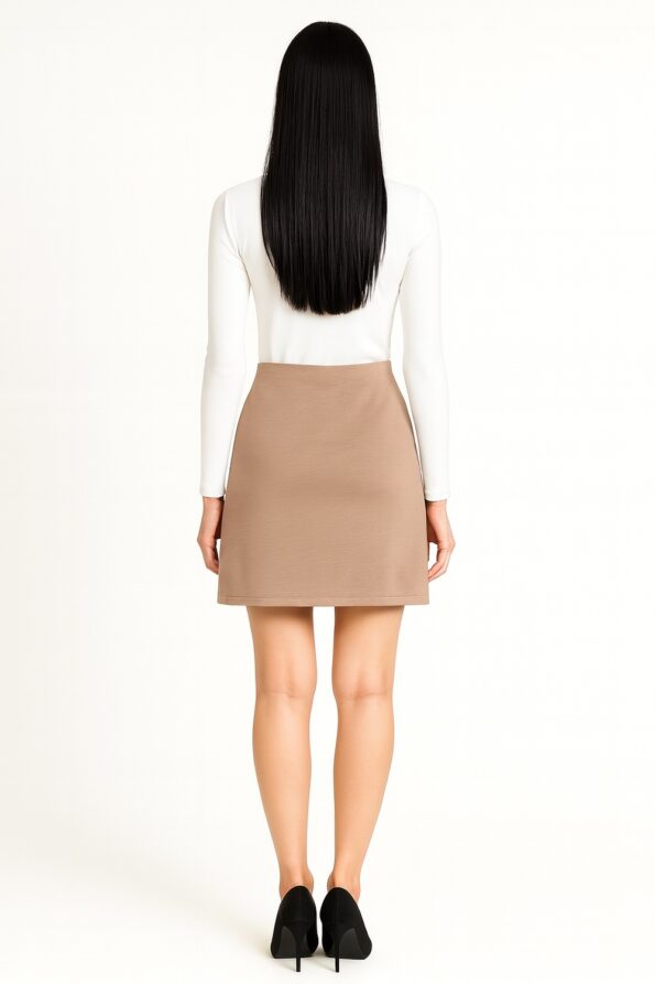 Falda línea A de tiro alto que estiliza la silueta, cinturón ancho con hebilla forrada que realza la cintura y aporta un detalle elegante, corte recto con caída amplia que favorece la movilidad, confección en tela estructurada que brinda firmeza y comodidad en cada uso