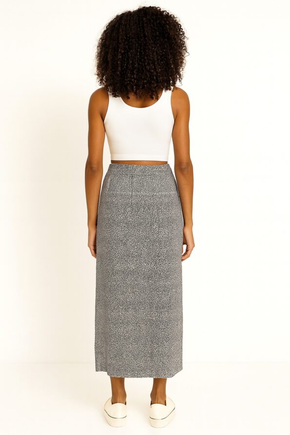 Falda tubo de tiro alto con diseño ajustado que estiliza la silueta, corte midi que aporta sofisticación y versatilidad para distintas ocasiones, pretina ancha que brinda ajuste seguro y cómodo, confección en tejido elástico que favorece la movilidad y resalta la figura, ideal para outfits de oficina o combinaciones elegantes de temporada