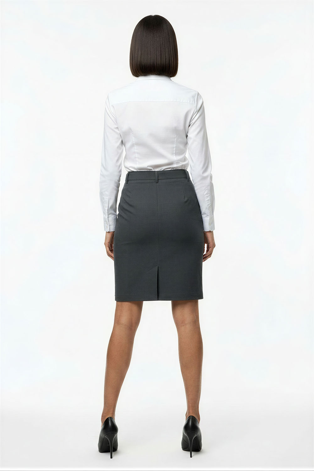 Falda tubo de corte ajustado con pretina ancha que brinda sujeción cómoda, costura trasera que estiliza la figura y aporta mejor ajuste, largo a la rodilla que ofrece un equilibrio entre elegancia y practicidad, confección en tejido firme con elasticidad ligera que se adapta al movimiento, terminaciones limpias que aseguran un acabado pulido y profesional
