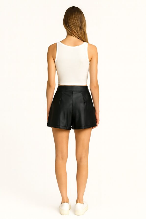 Falda short con diseño de tablones al frente que aporta volumen y estilo moderno, pretina ancha con botón lateral que brinda ajuste seguro, silueta corta con short interno que añade practicidad y comodidad, confeccionada en tejido resistente con acabado suave, costuras reforzadas que aseguran mayor durabilidad