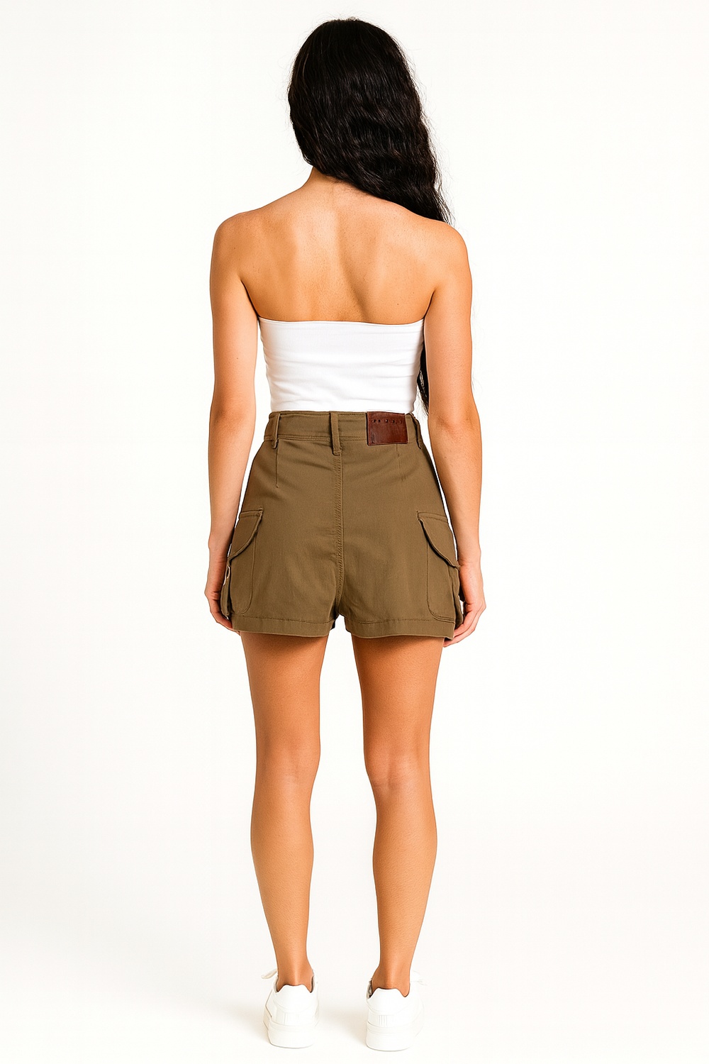 Minifalda de tiro medio con bolsillos funcionales a los costados, corte recto que ofrece ajuste cómodo, confección en tejido resistente de tacto firme, largo corto que aporta practicidad, acabados definidos que mantienen la estructura