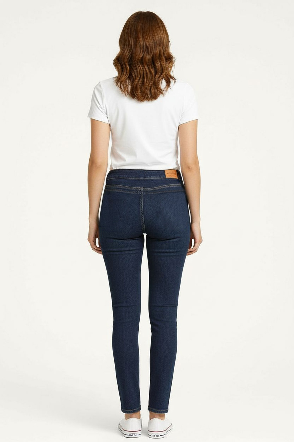 Jeans de tiro medio con pretina anatómica y cierre frontal, corte ajustado desde cadera hasta tobillo que define la silueta, confección en mezclilla con elasticidad para mayor confort, bolsillos funcionales delanteros y traseros, largo completo con ajuste preciso
