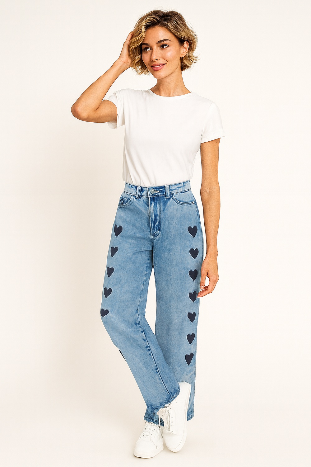 JEANS CORTE AMPLIO DETALLE BORDADO