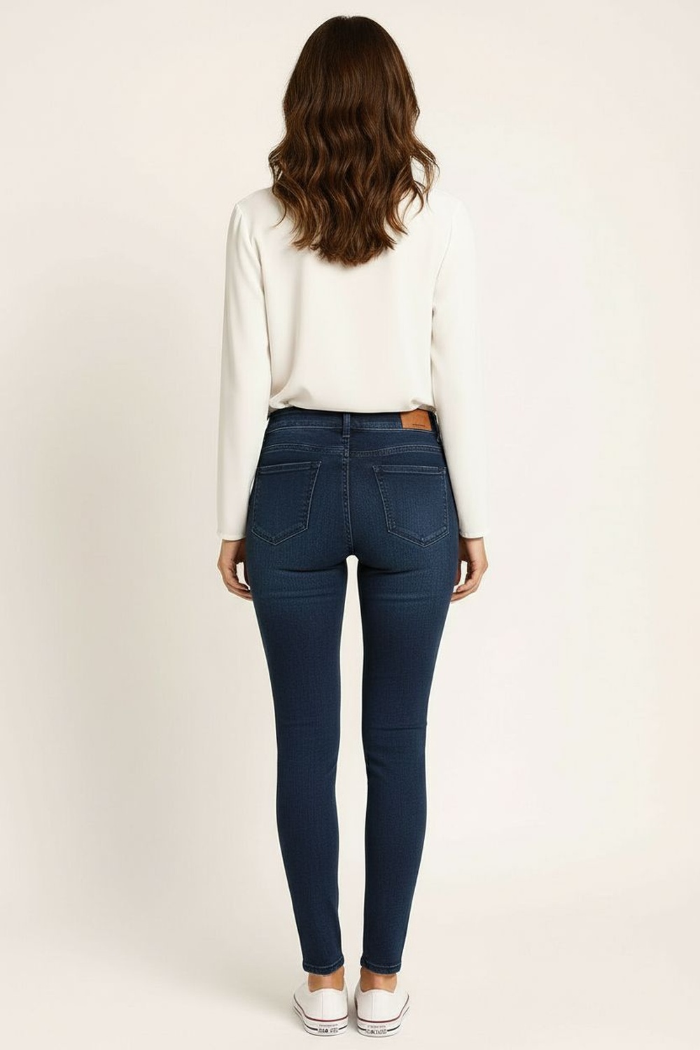 JEANS NYD de tiro alto con doble botón frontal que brinda ajuste firme y seguro, pretina estructurada que define la cintura, corte entallado en pierna que estiliza la silueta, pespunte inclinado decorativo que aporta detalle visual, bolsillos funcionales al frente y en posterior, largo completo con terminación limpia, confección en tejido con elasticidad controlada que favorece la movilidad
