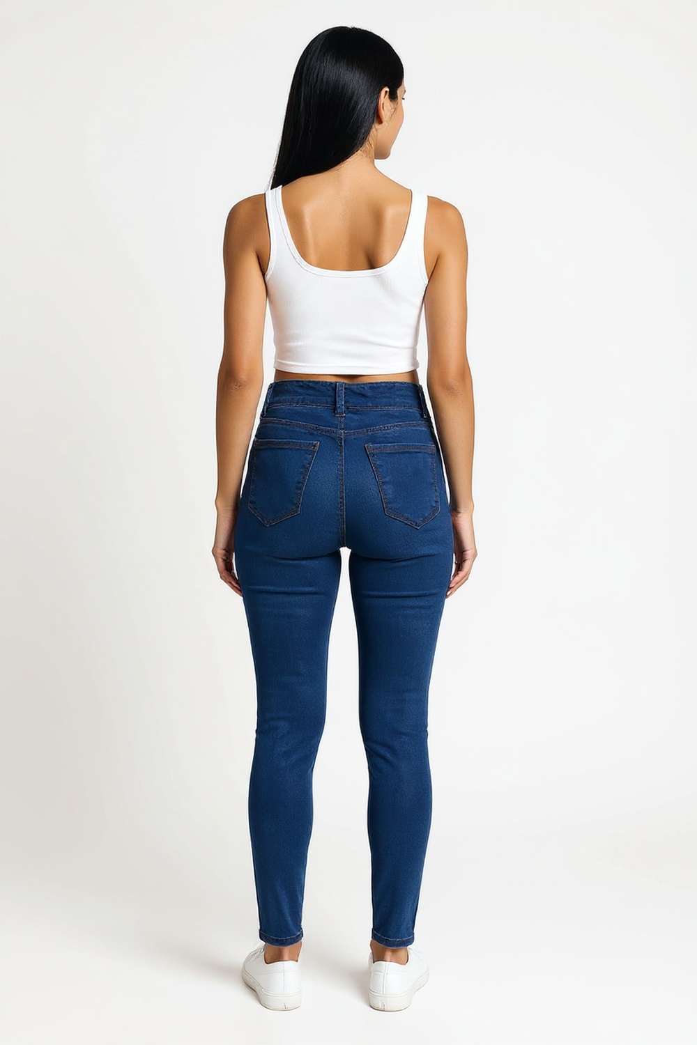 Jeans de corte skinny con tiro alto que realza la figura, bolsillos traseros funcionales que estilizan y aportan practicidad, corte ajustado que moldea y brinda un look moderno, mezclilla elástica que asegura comodidad y libertad de movimiento, perfecto para outfits casuales y versátiles de temporada