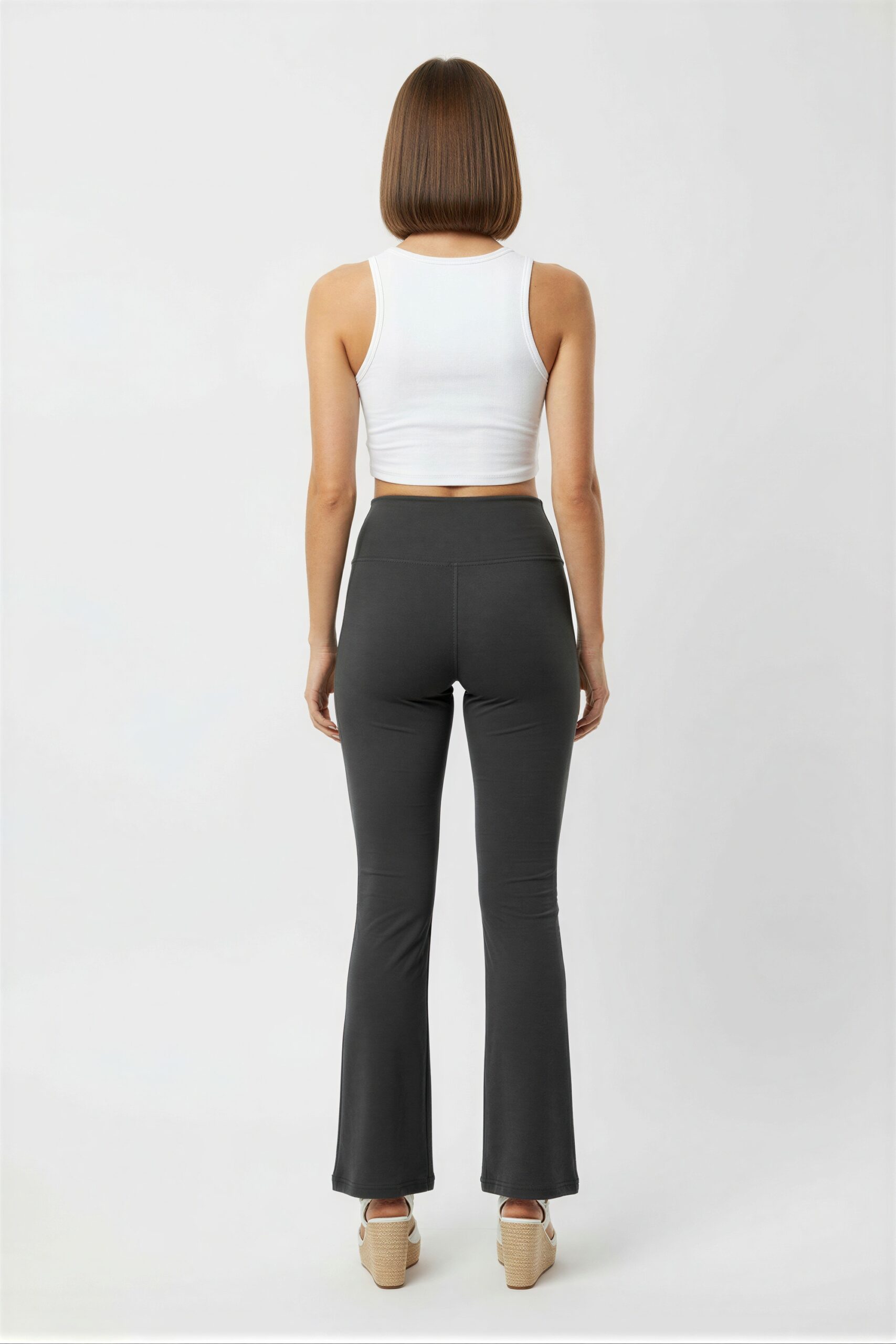 Leggings tiro alto con pretina amplia ajuste al cuerpo diseño sin bolsillos visibles estructura flexible que brinda comodidad y soporte