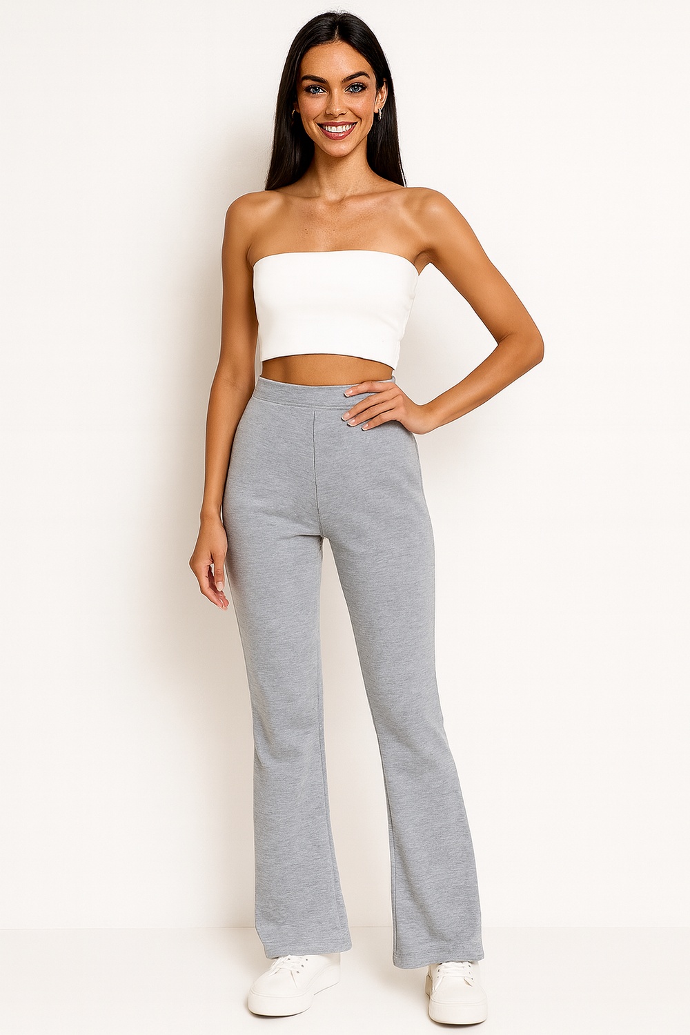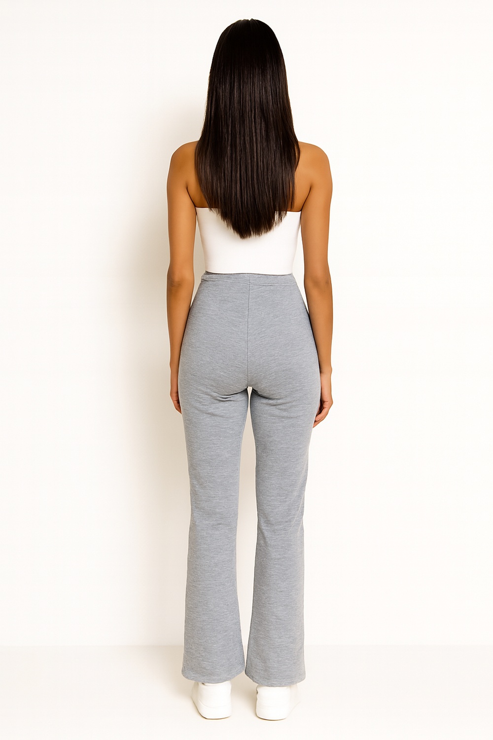 Leggings de tiro medio con pretina amplia que brinda soporte en la zona abdominal, corte de pierna amplia que aporta caída natural y sensación relajada, confección en french terry de textura suave y flexible, ajuste cómodo que permite libertad al caminar, estructura ligera que se adapta al cuerpo sin limitar el movimiento