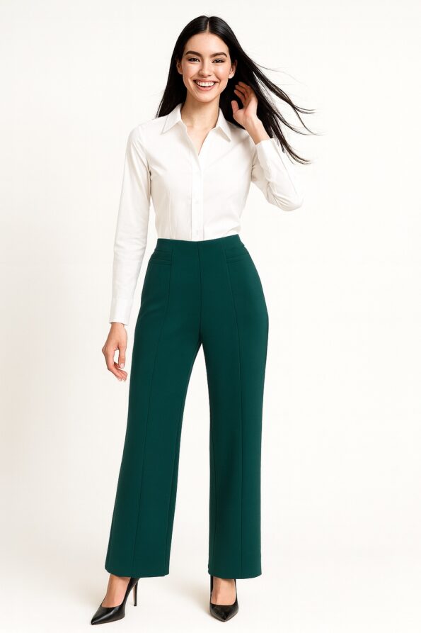 Pantalón corte recto y estructura limpia es la definición del básico atemporal que toda mujer necesita en su guardarropa, con pretina lisa, botón al frente y discretas bolsas laterales, ofrece una silueta pulida y sofisticada, su versatilidad lo convierte en el aliado perfecto tanto para entornos formales, office