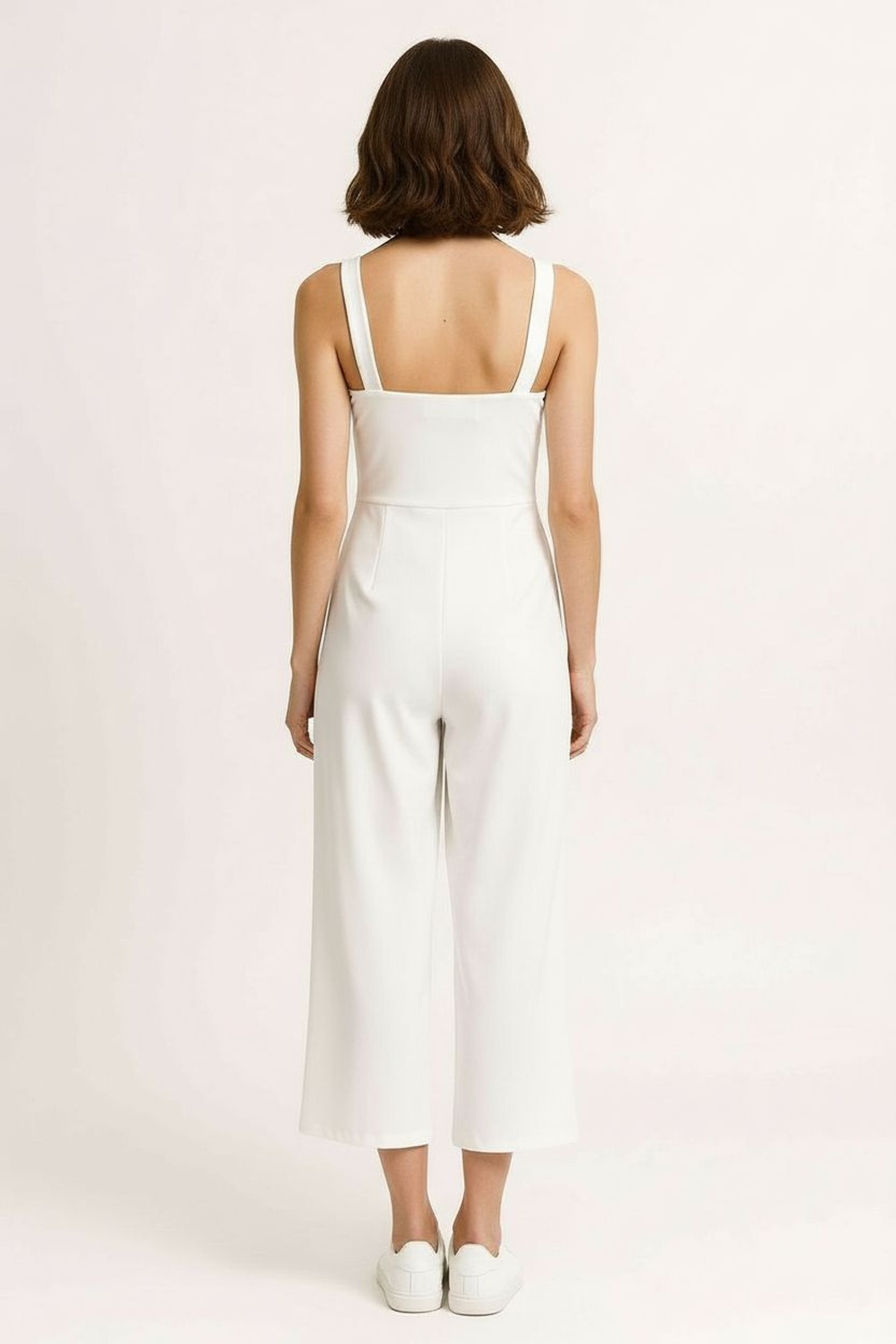 Palazzo de tirantes finos y escote recto, espalda descubierta con moño decorativo que aporta detalle distintivo, corte amplio en pierna que favorece la caída del tejido, confección fluida que aporta elegancia y comodidad al movimiento