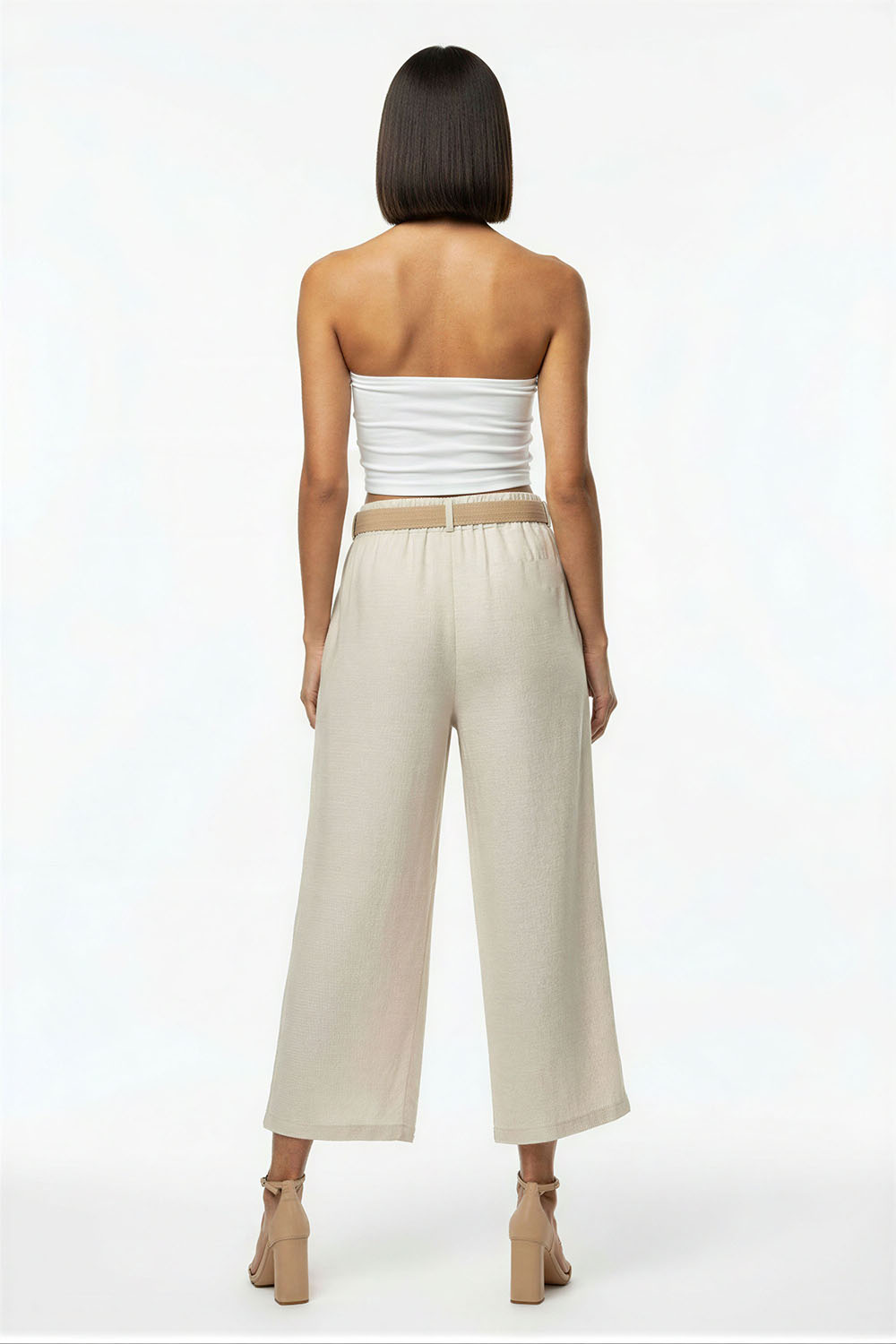 Pantalón de tiro alto con pretina elástica que brinda ajuste cómodo y adaptable, silueta amplia de pierna recta que favorece la movilidad y aporta fluidez, incluye cinturón integrado con hebilla que define la cintura, diseño con caída relajada que estiliza la figura, confección en tejido ligero de textura suave que permite transpirabilidad y confort prolongado