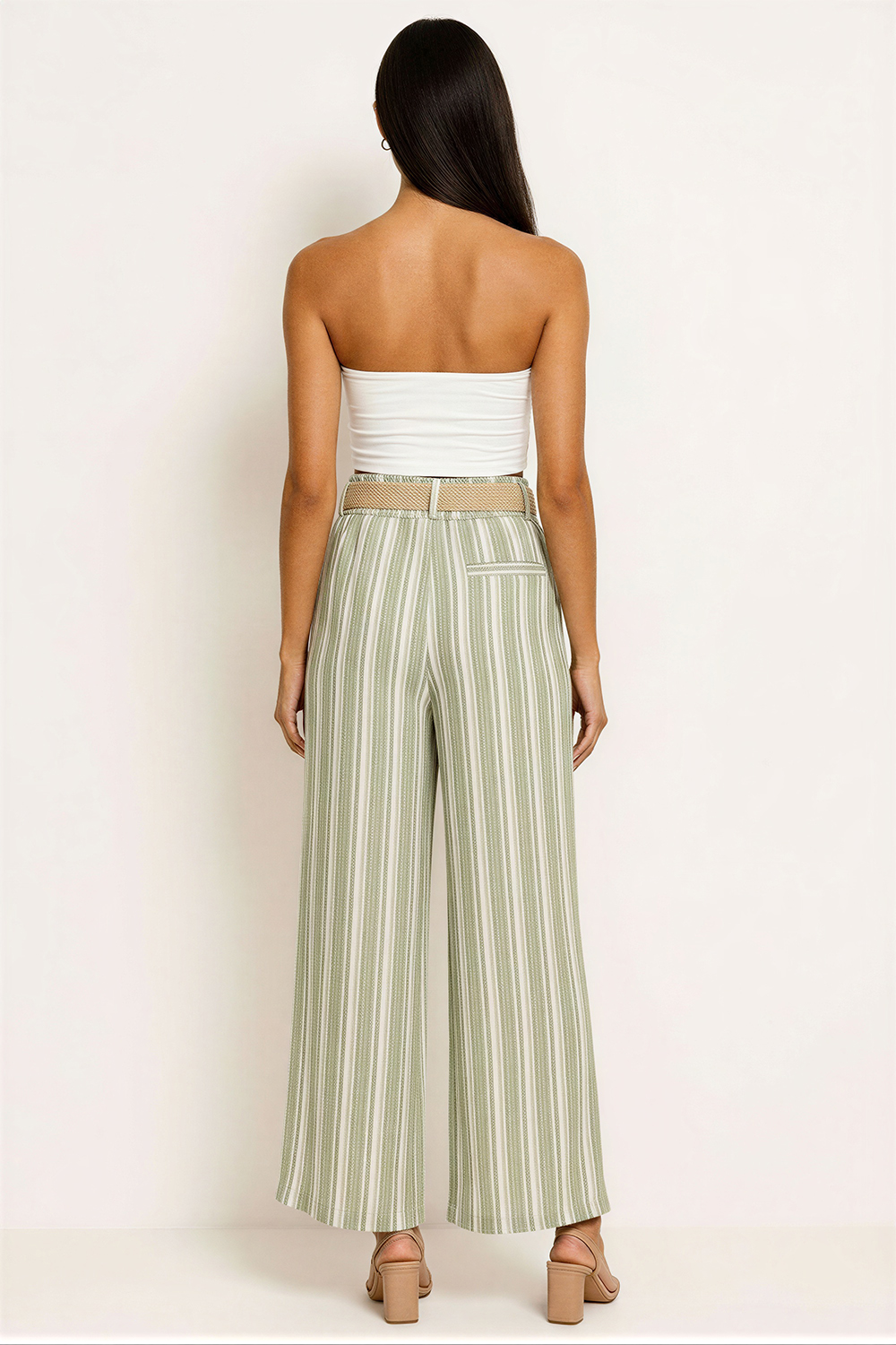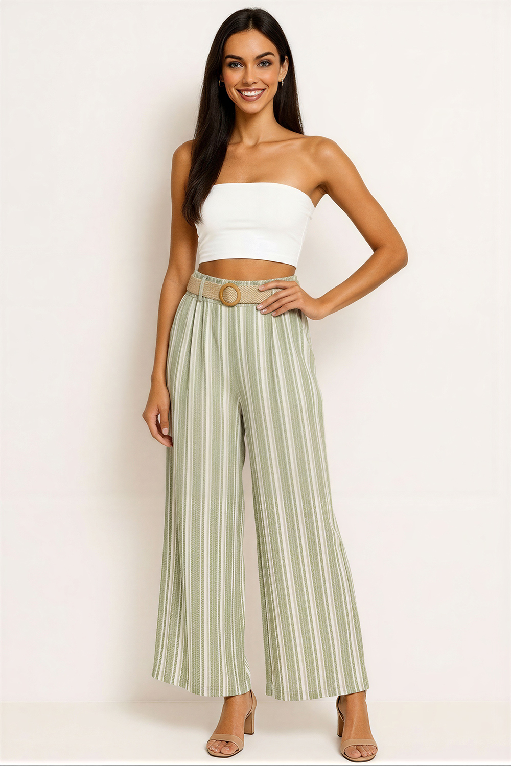 Pantalon amplio, pretina con cinturón incluido, pinzas frontales, pierna amplia con caída fluida, estructura ligera