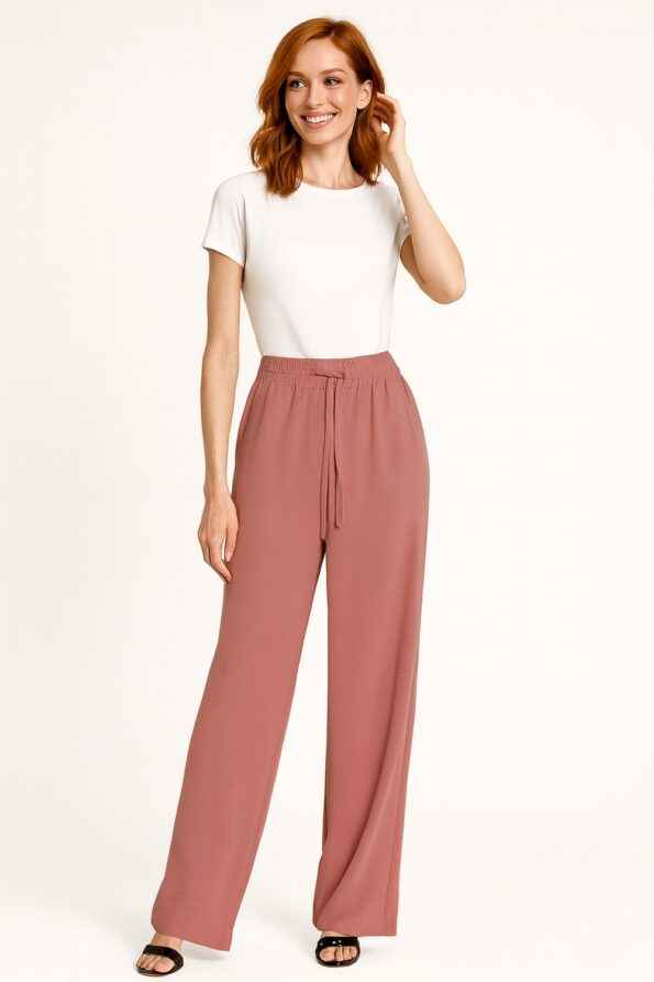 Pantalón amplio de tiro medio con pretina elástica que incorpora jareta ajustable para mayor seguridad y confort, silueta holgada que favorece la movilidad y aporta frescura, pierna recta con caída ligera que brinda un look relajado, confección en tejido suave con tacto agradable que garantiza comodidad en el uso diario