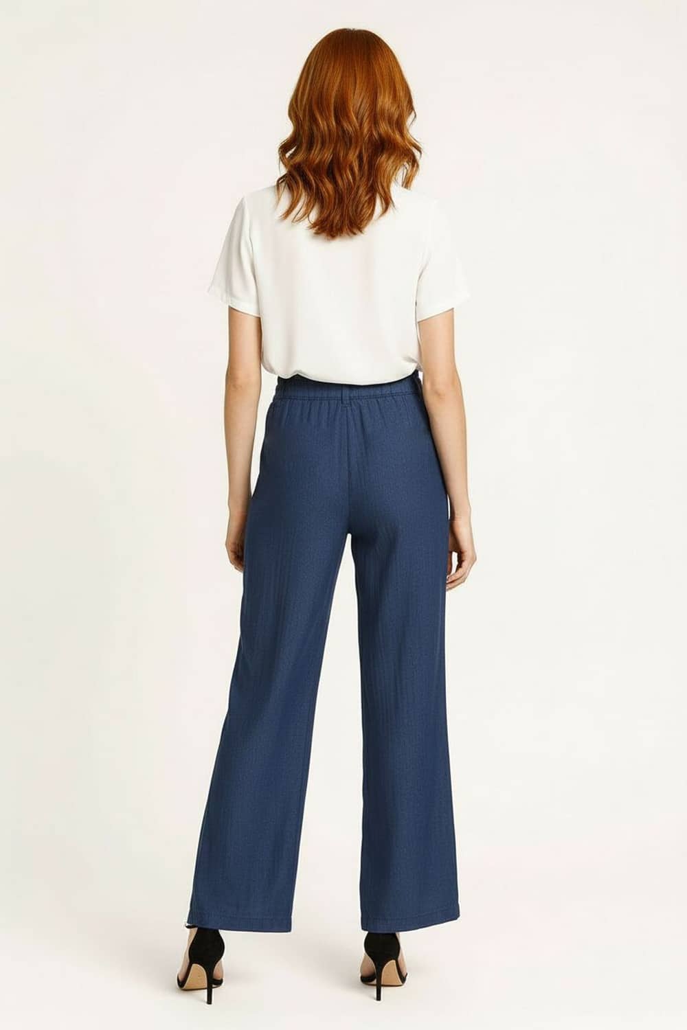Pantalón de silueta amplia con pretina elástica que facilita el ajuste, diseño de pierna recta que aporta libertad de movimiento, largo completo que estiliza la figura, confección suave al tacto con caída uniforme, terminaciones limpias que elevan su presentación